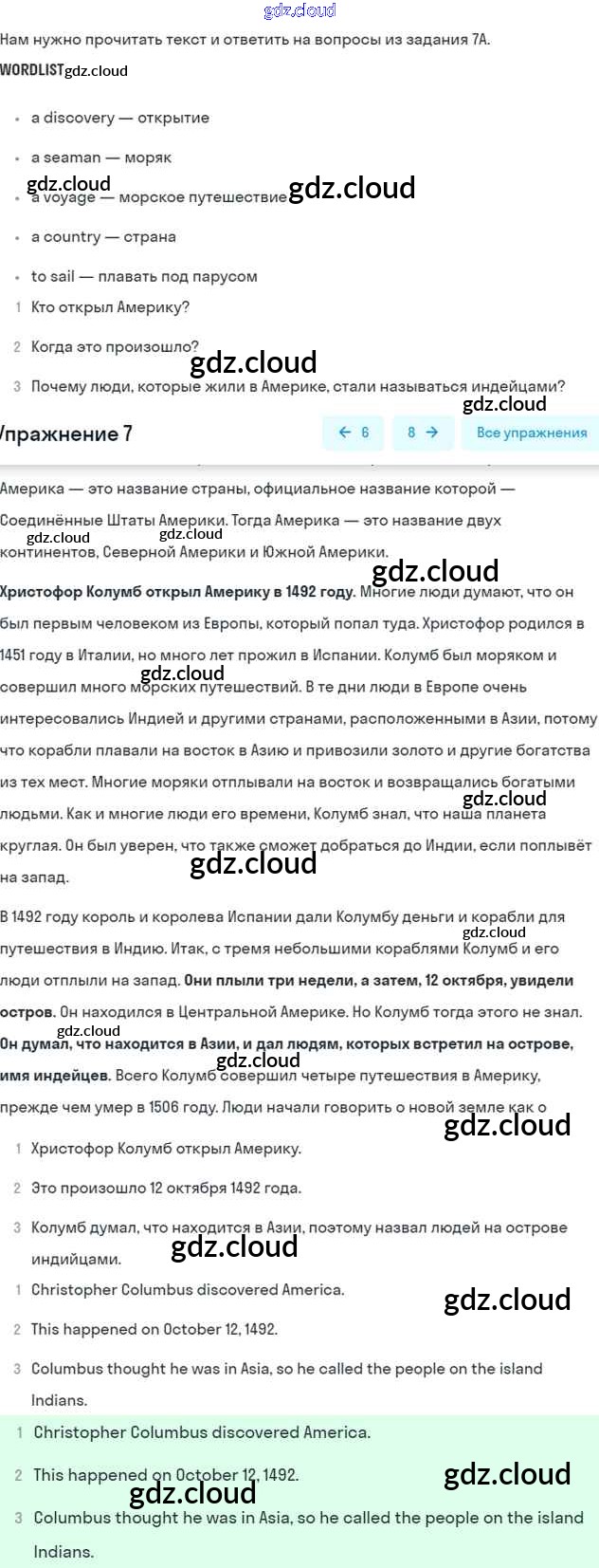 Ответ на задание 7 Учебник Английский язык  за 6 (шестой) класс Афанасьева, Михеева, Баранова Rainbow  2017 Часть 1, 2