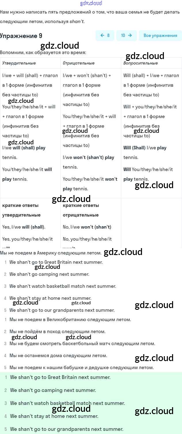 Ответ на задание 9 Учебник Английский язык  за 6 (шестой) класс Афанасьева, Михеева, Баранова Rainbow  2017 Часть 1, 2