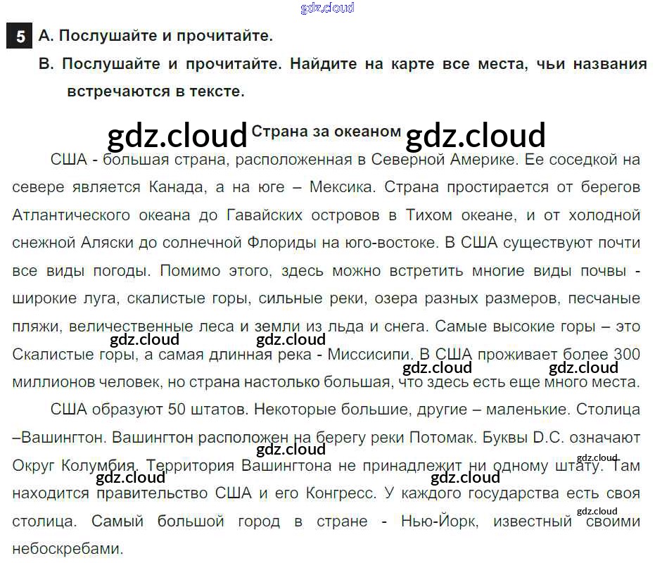 Ответ на задание 5 Учебник Английский язык  за 6 (шестой) класс Афанасьева, Михеева, Баранова Rainbow  2017 Часть 1, 2