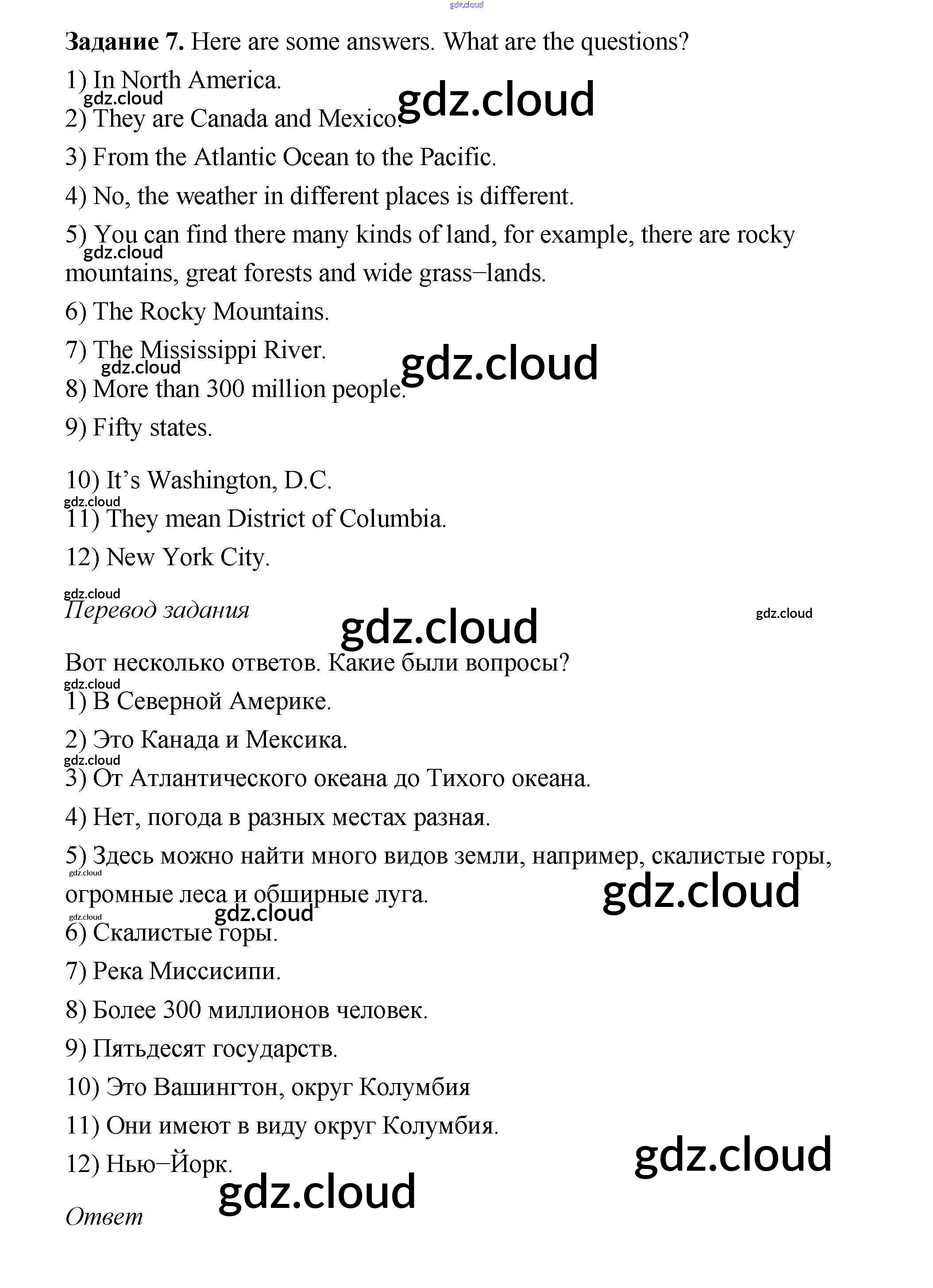Ответ на задание 7 Учебник Английский язык  за 6 (шестой) класс Афанасьева, Михеева, Баранова Rainbow  2017 Часть 1, 2