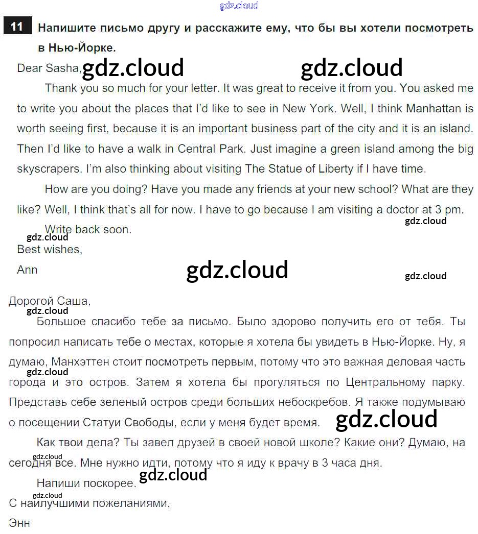 Ответ на задание 11 Учебник Английский язык  за 6 (шестой) класс Афанасьева, Михеева, Баранова Rainbow  2017 Часть 1, 2