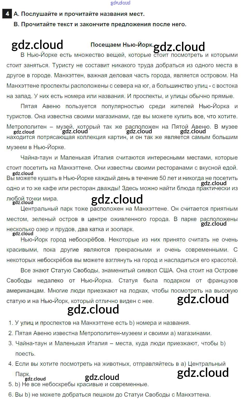 Ответ на задание 4 Учебник Английский язык  за 6 (шестой) класс Афанасьева, Михеева, Баранова Rainbow  2017 Часть 1, 2