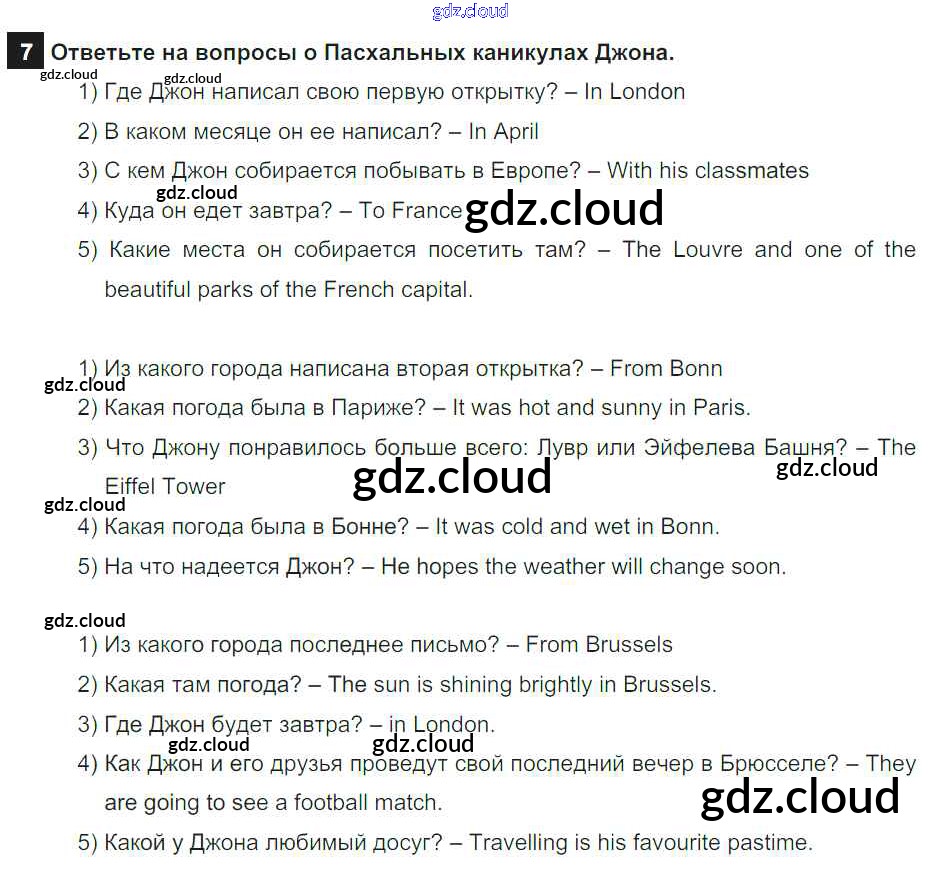 Ответ на задание 7 Учебник Английский язык  за 6 (шестой) класс Афанасьева, Михеева, Баранова Rainbow  2017 Часть 1, 2