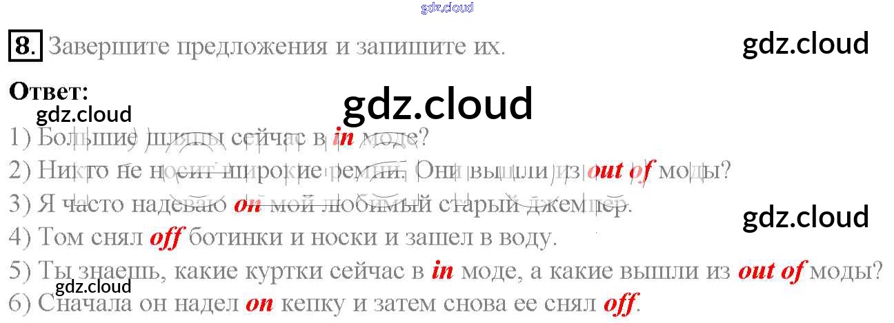 Ответ на задание 8 Учебник Английский язык  за 6 (шестой) класс Афанасьева, Михеева, Баранова Rainbow  2017 Часть 1, 2