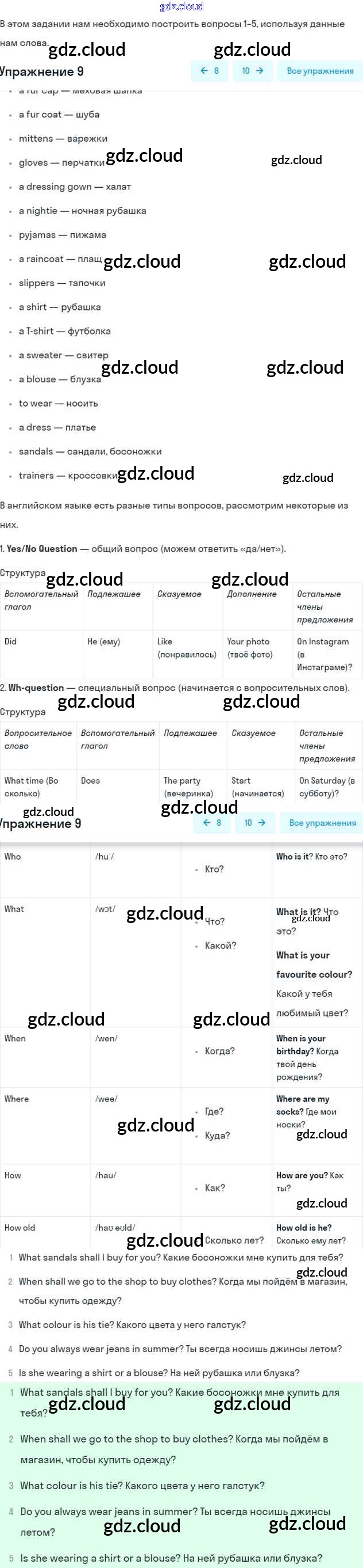 Ответ на задание 9 Учебник Английский язык  за 6 (шестой) класс Афанасьева, Михеева, Баранова Rainbow  2017 Часть 1, 2