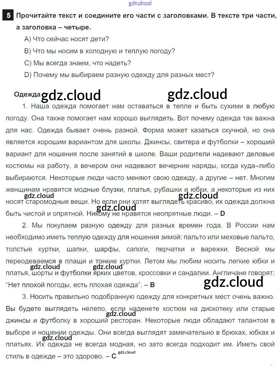 Ответ на задание 5 Учебник Английский язык  за 6 (шестой) класс Афанасьева, Михеева, Баранова Rainbow  2017 Часть 1, 2