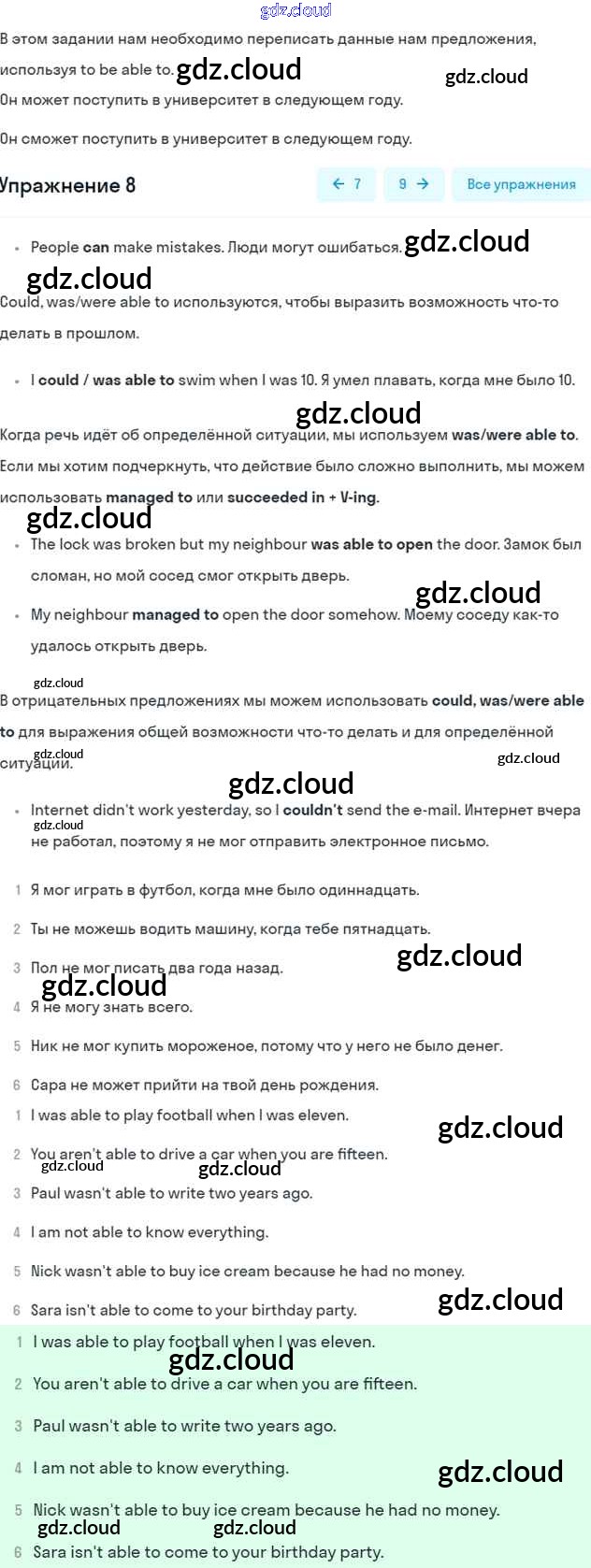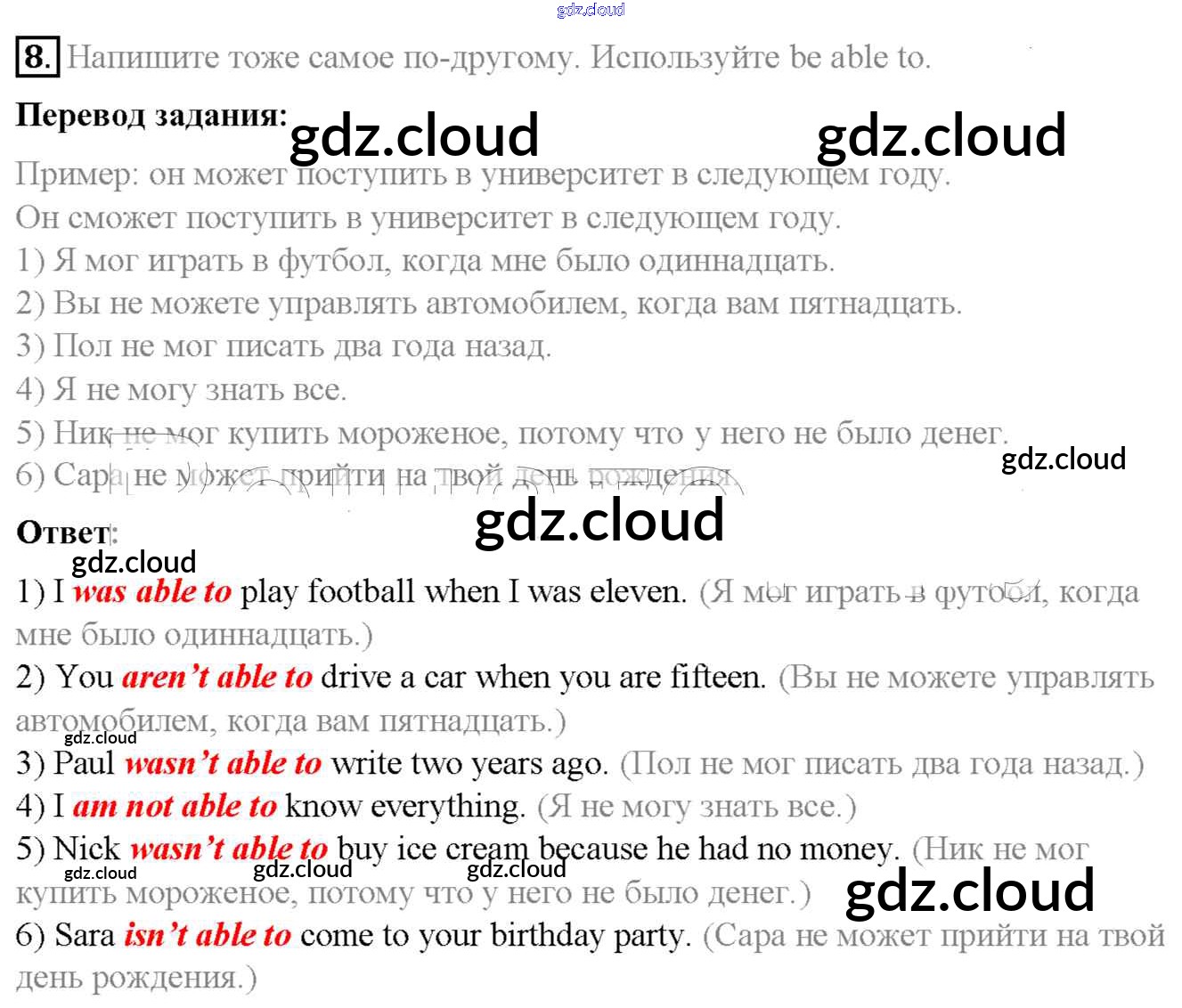 Ответ на задание 8 Учебник Английский язык  за 6 (шестой) класс Афанасьева, Михеева, Баранова Rainbow  2017 Часть 1, 2