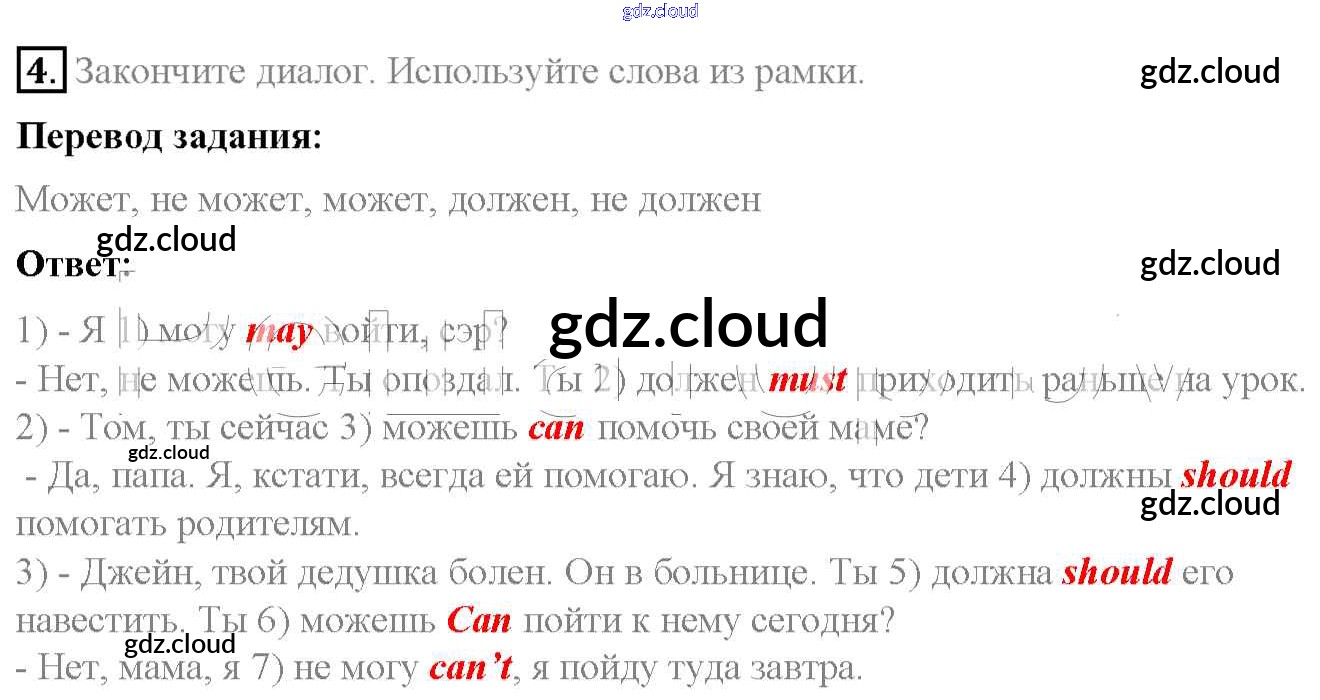 Ответ на задание 4 Учебник Английский язык  за 6 (шестой) класс Афанасьева, Михеева, Баранова Rainbow  2017 Часть 1, 2
