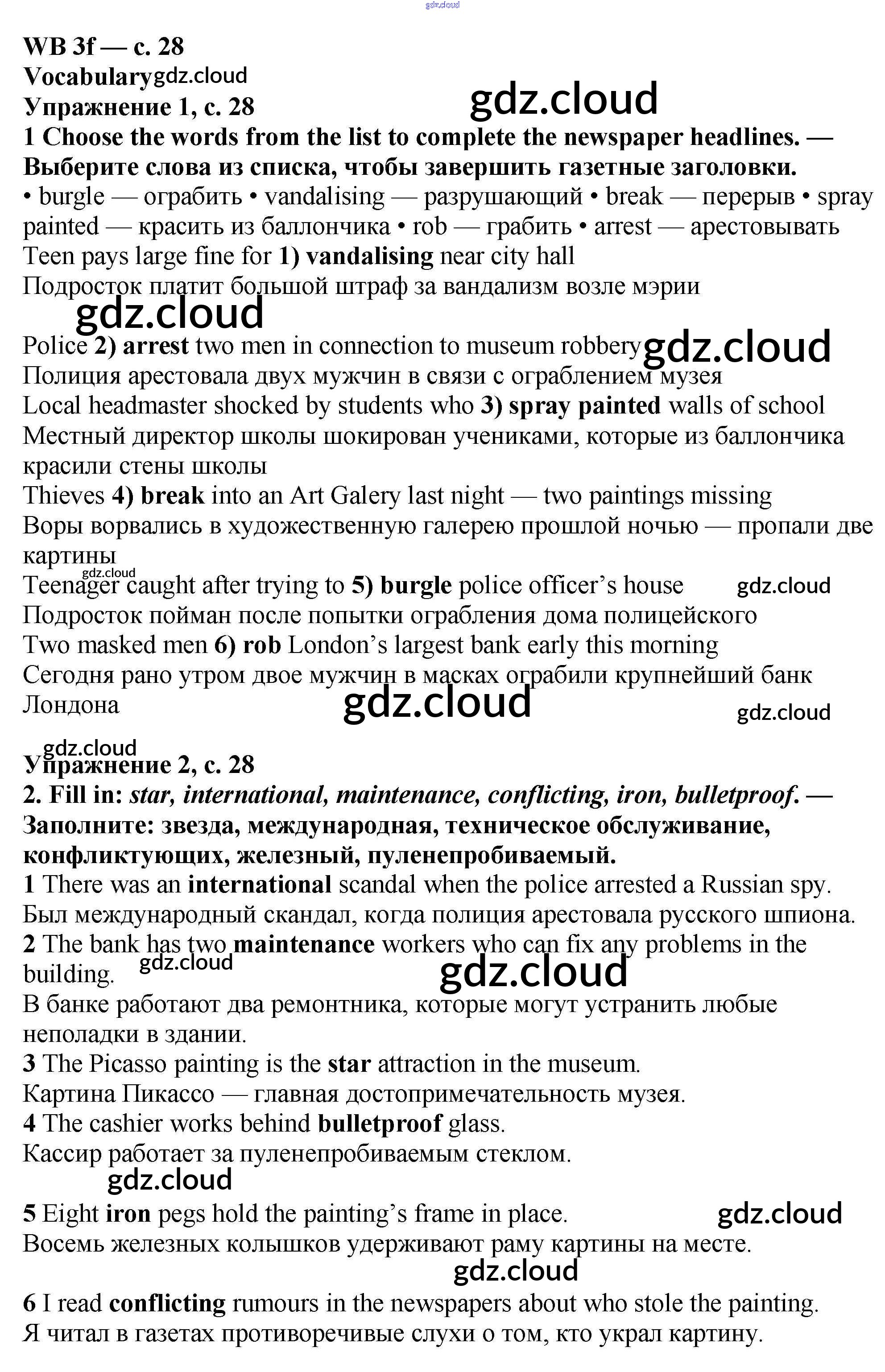 Ответ на задание 28 Рабочая тетрадь Английский язык  за 6 (шестой) класс Мильруд, Эванс, Дули, Баранова, Копылова Starlight Углубленный уровень 2020