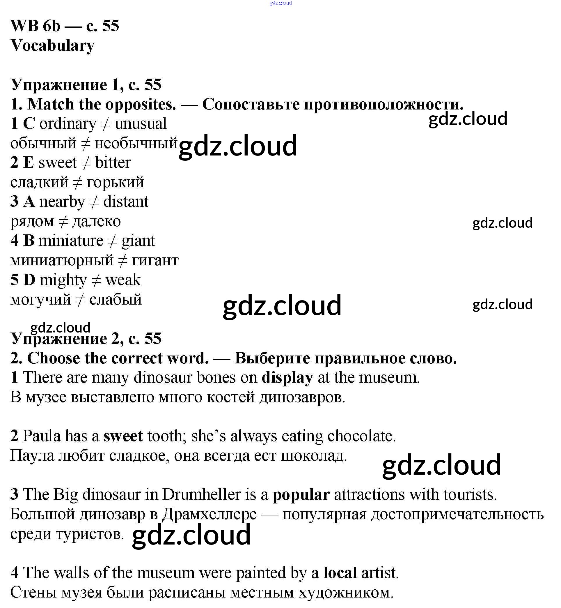 Ответ на задание 55 Рабочая тетрадь Английский язык  за 6 (шестой) класс Мильруд, Эванс, Дули, Баранова, Копылова Starlight Углубленный уровень 2020
