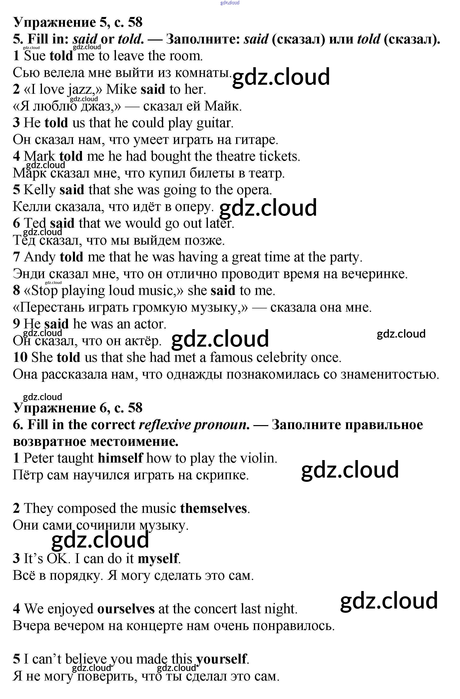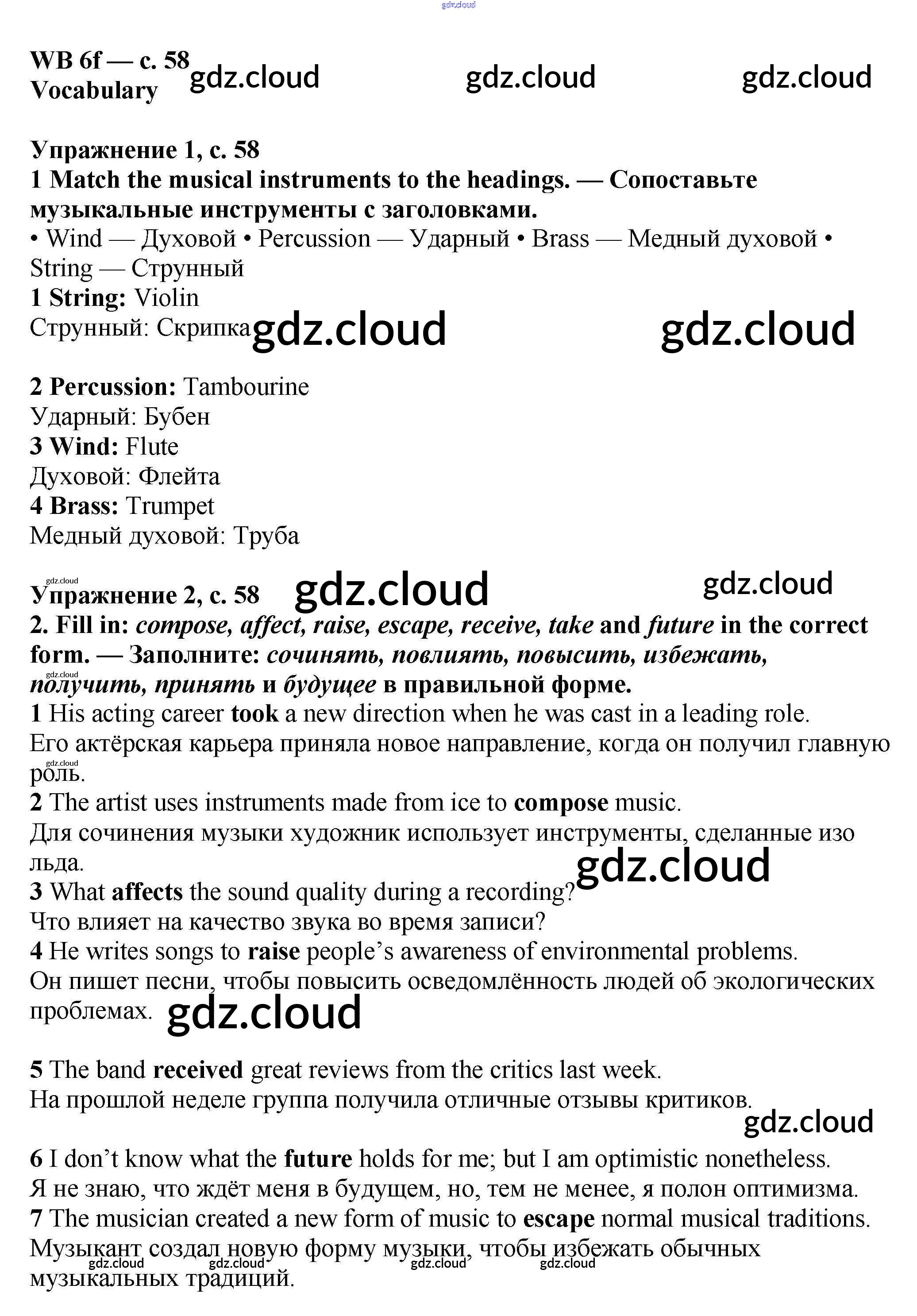 Ответ на задание 58 Рабочая тетрадь Английский язык  за 6 (шестой) класс Мильруд, Эванс, Дули, Баранова, Копылова Starlight Углубленный уровень 2020