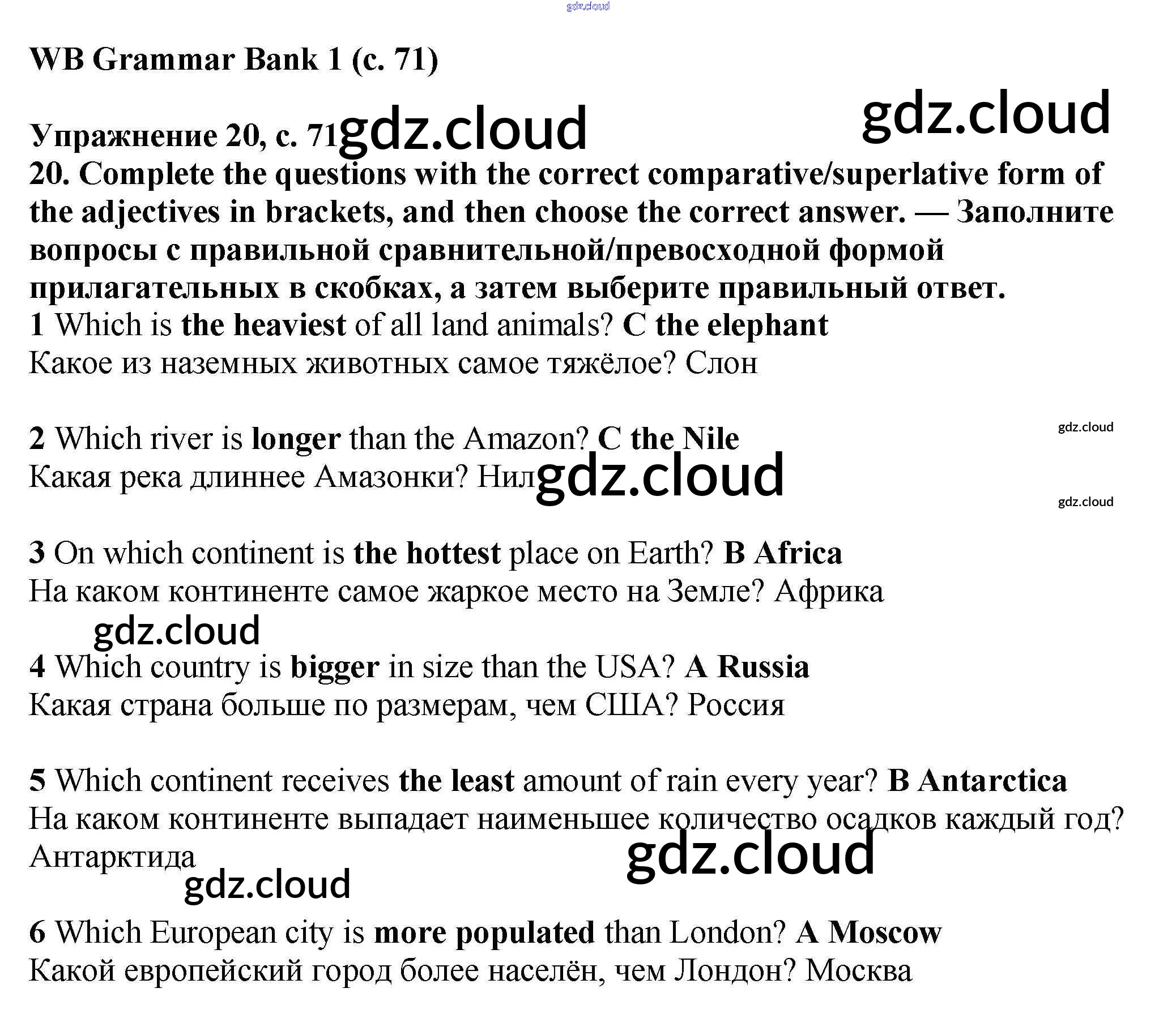 Ответ на задание 71 Рабочая тетрадь Английский язык  за 6 (шестой) класс Мильруд, Эванс, Дули, Баранова, Копылова Starlight Углубленный уровень 2020