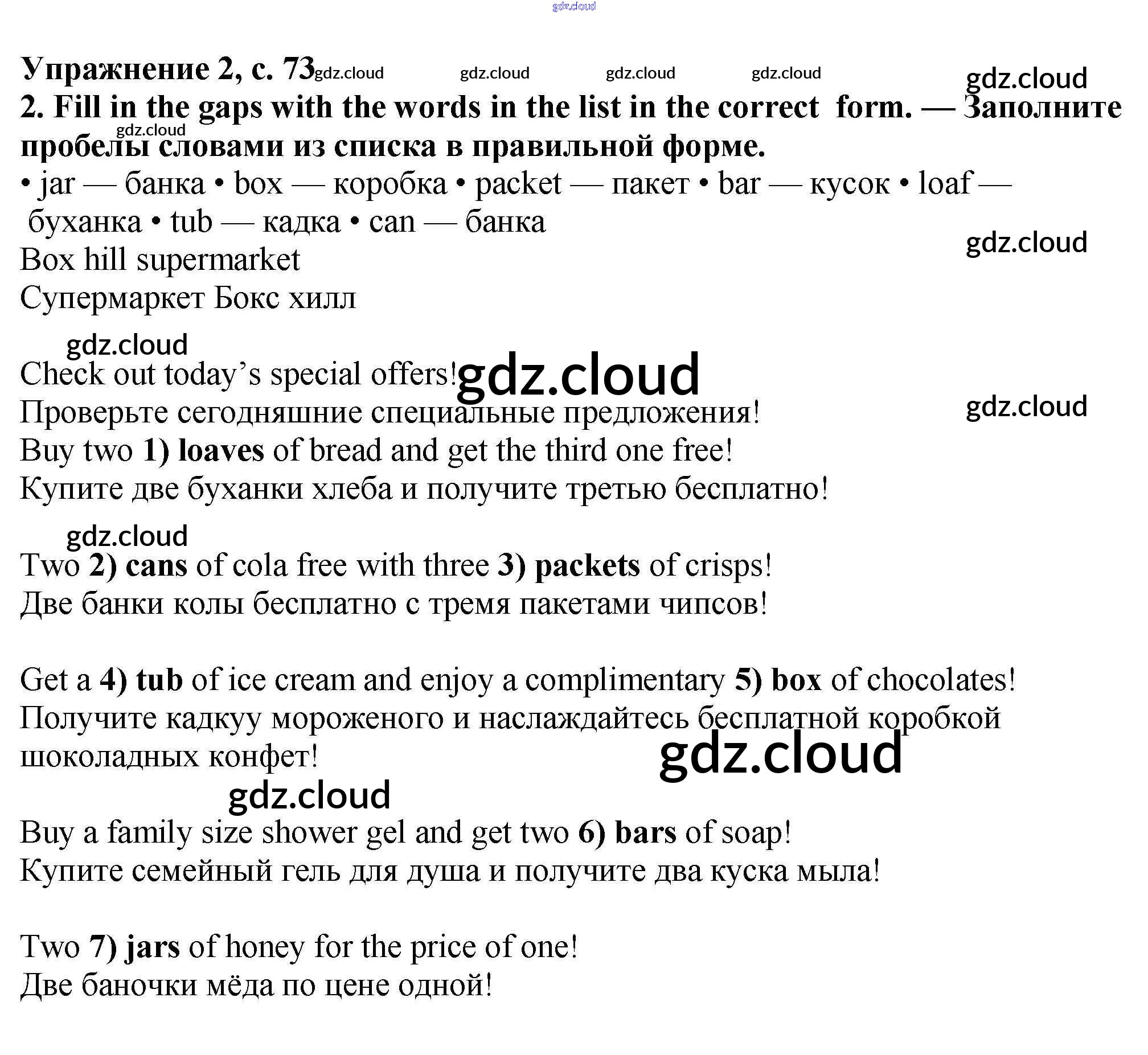 Ответ на задание 73 Рабочая тетрадь Английский язык  за 6 (шестой) класс Мильруд, Эванс, Дули, Баранова, Копылова Starlight Углубленный уровень 2020