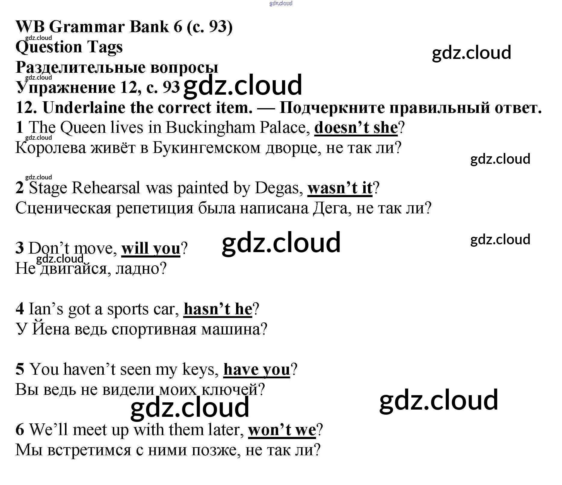 Ответ на задание 93 Рабочая тетрадь Английский язык  за 6 (шестой) класс Мильруд, Эванс, Дули, Баранова, Копылова Starlight Углубленный уровень 2020