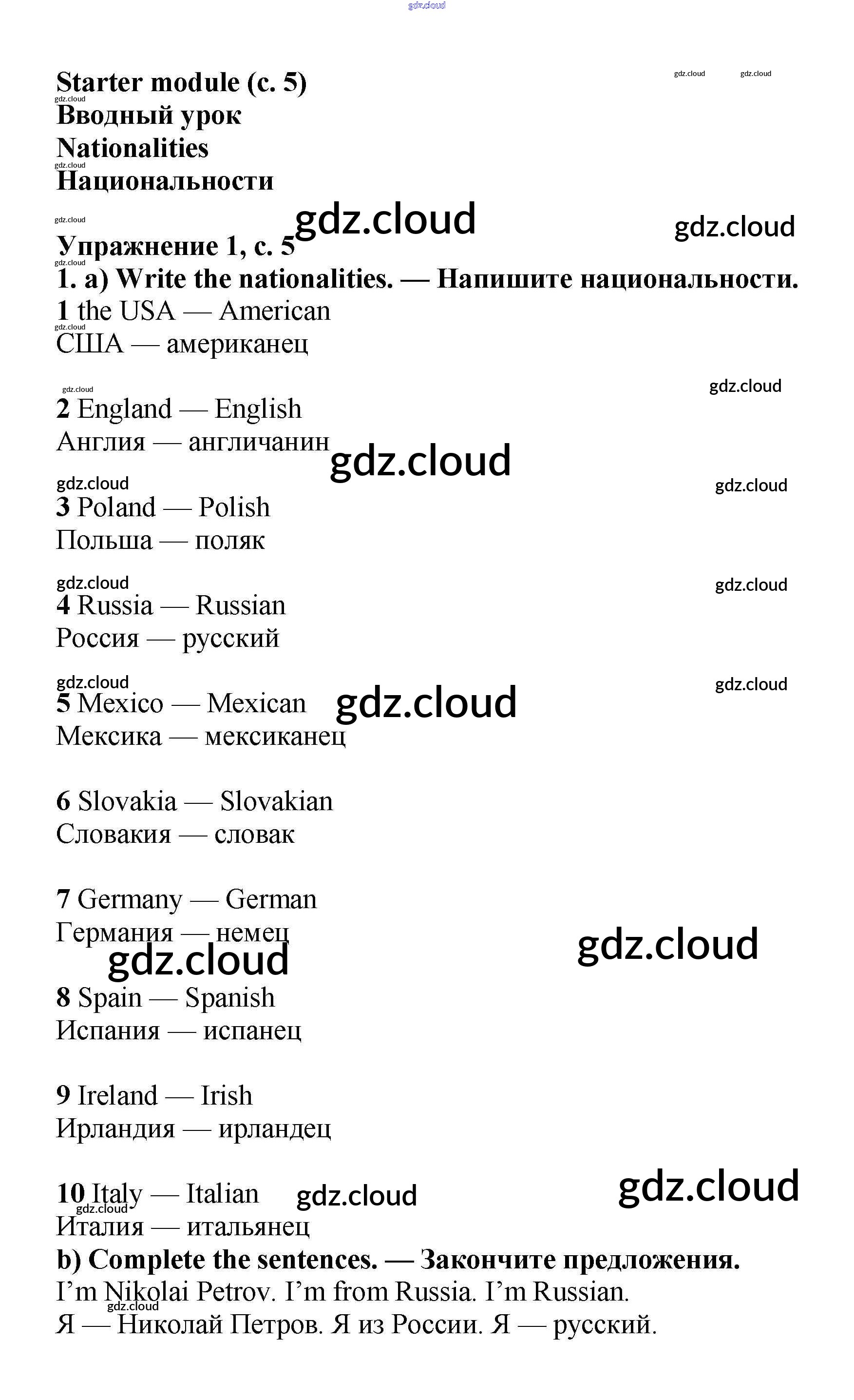 Ответы к Starter Module  по Английскому языку 6 класс Учебник Баранова Starlight Углубленный уровень  Просвещение