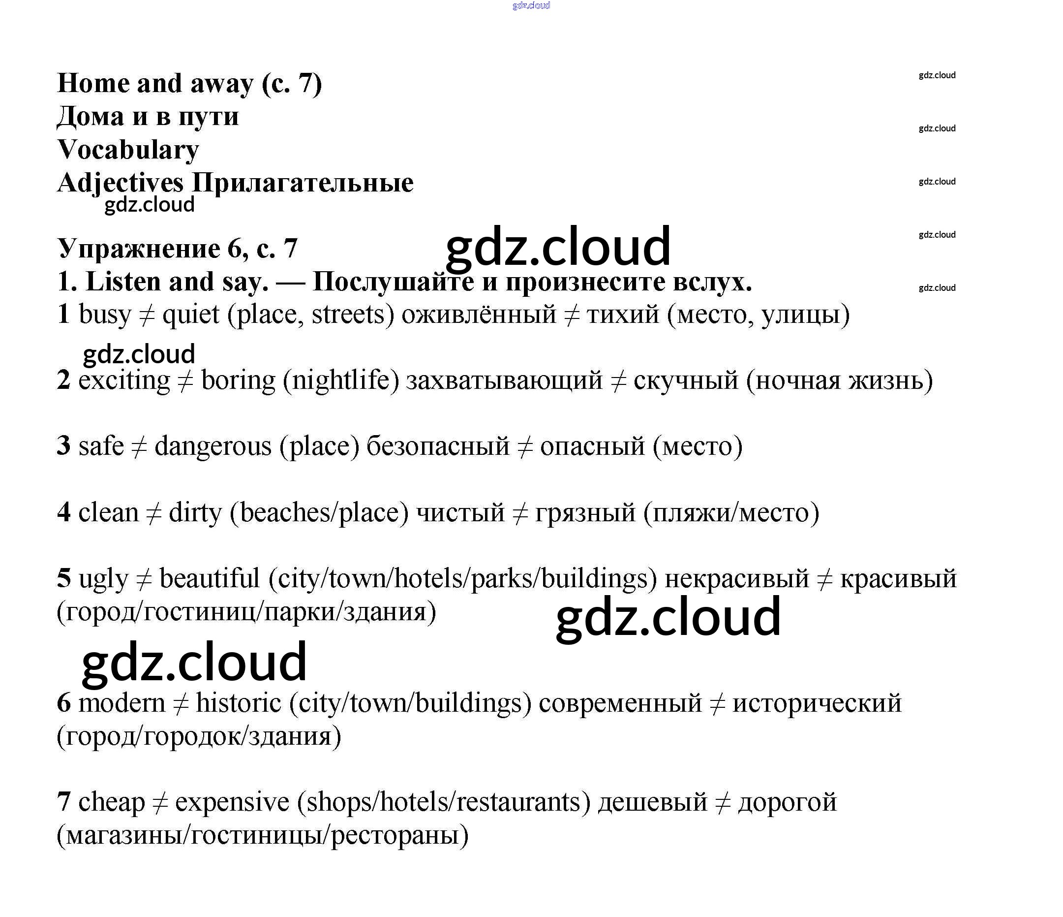 Ответ на задание стр.7 Учебник Английский язык  за 6 (шестой) класс Баранова, Дули, Эванс, Копылова, Мильруд Starlight Углубленный уровень 2017