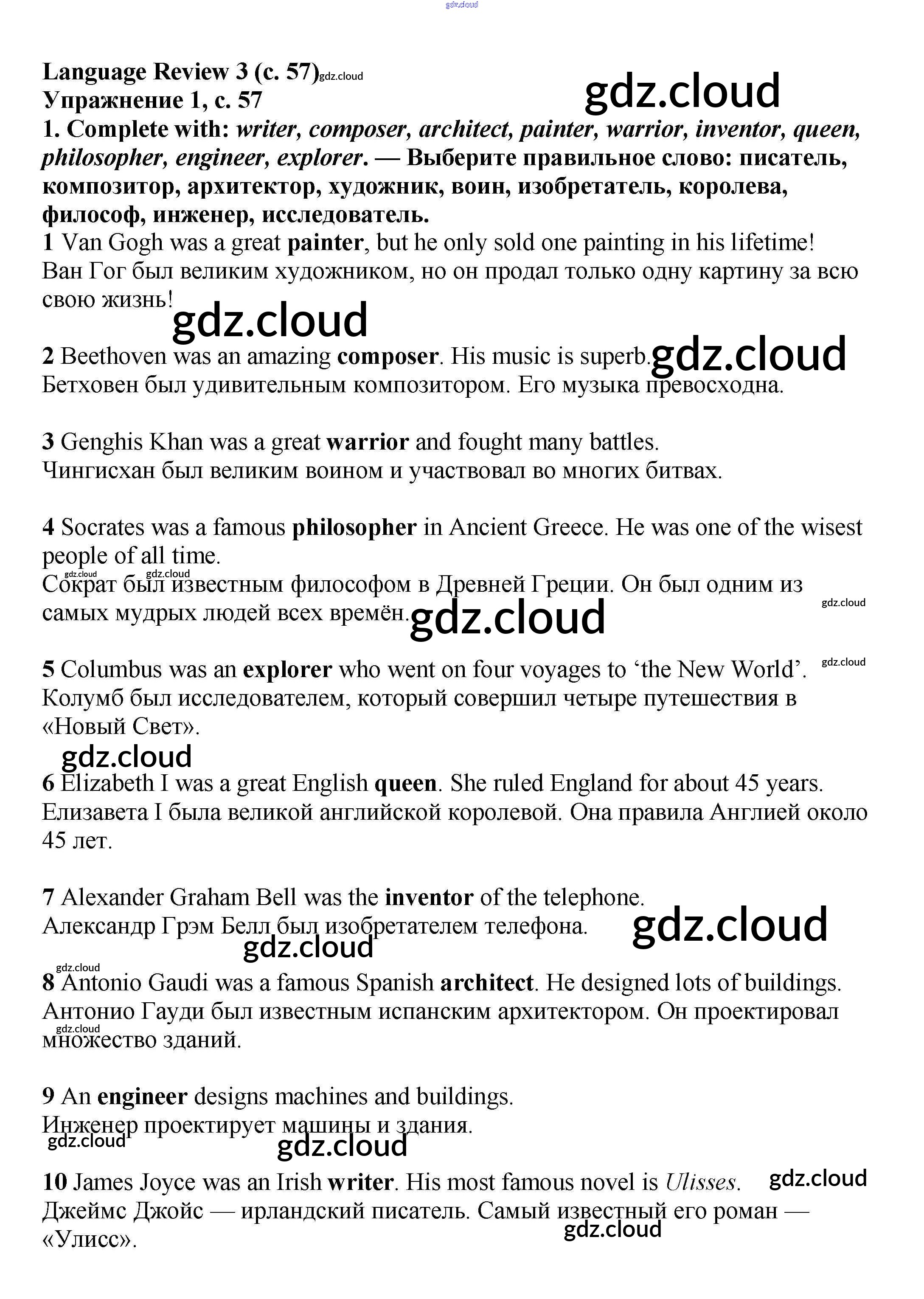 Ответ на задание стр.57 Учебник Английский язык  за 6 (шестой) класс Баранова, Дули, Эванс, Копылова, Мильруд Starlight Углубленный уровень 2017