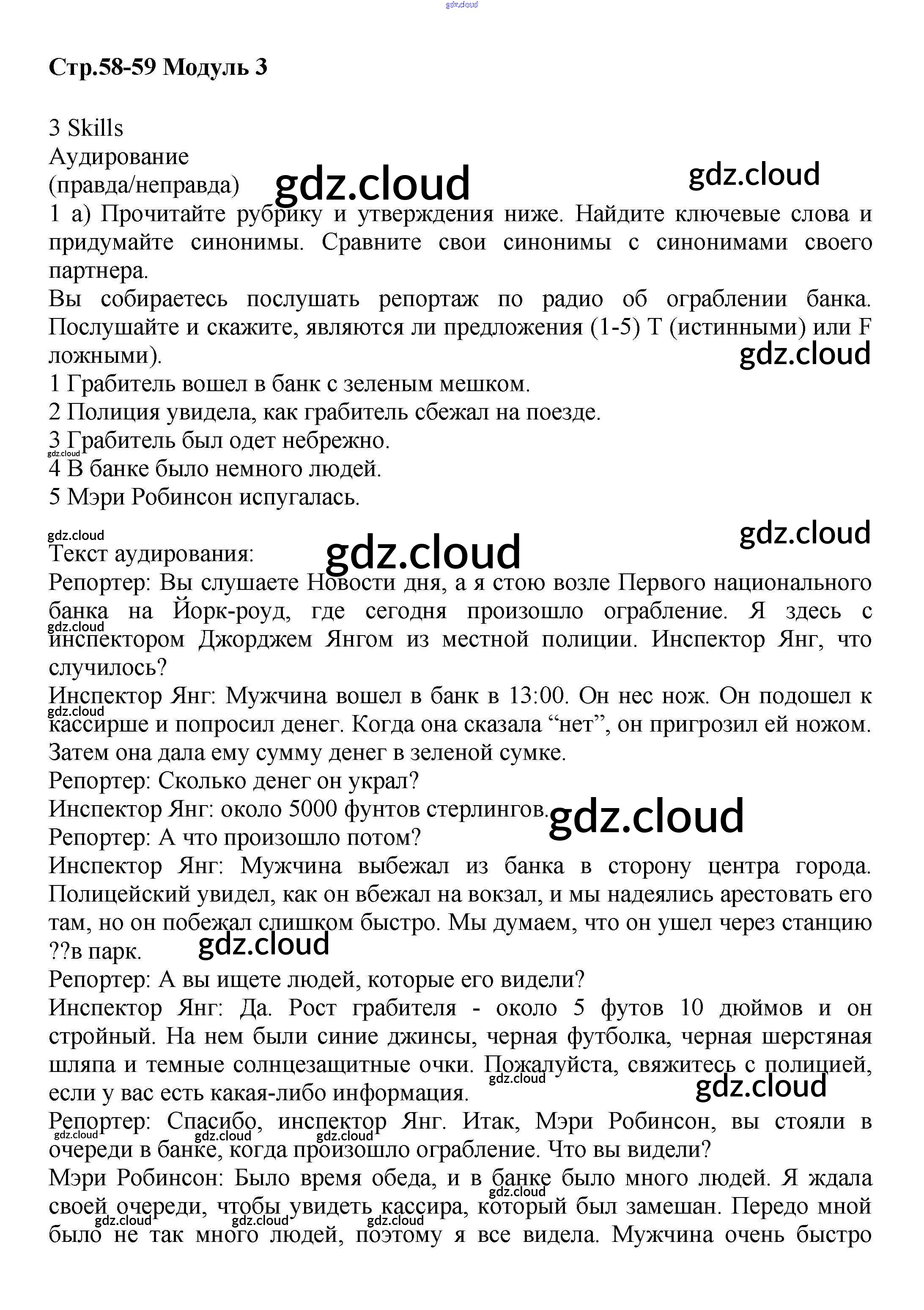 Ответ на задание стр.58-59 Учебник Английский язык  за 6 (шестой) класс Баранова, Дули, Эванс, Копылова, Мильруд Starlight Углубленный уровень 2017