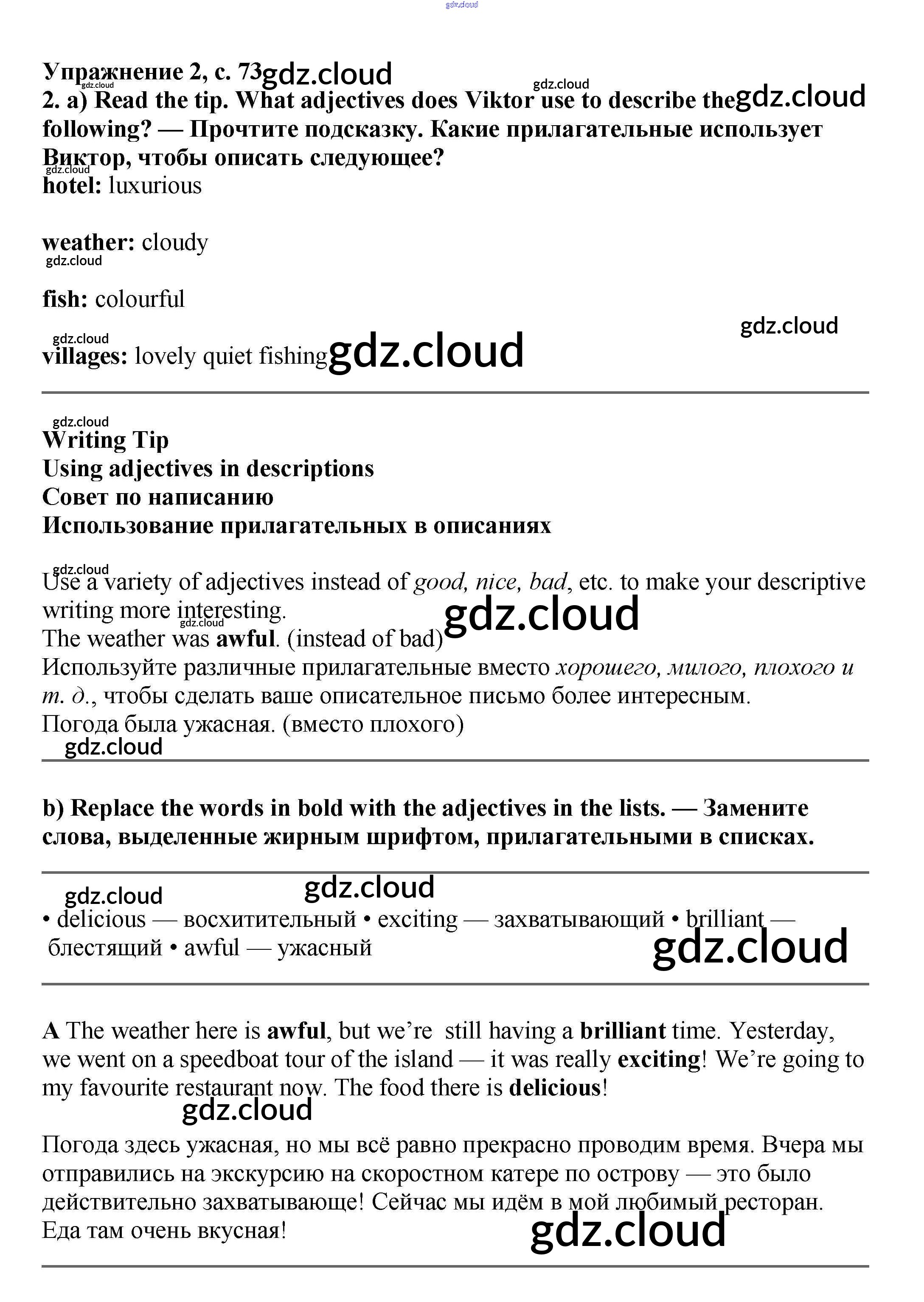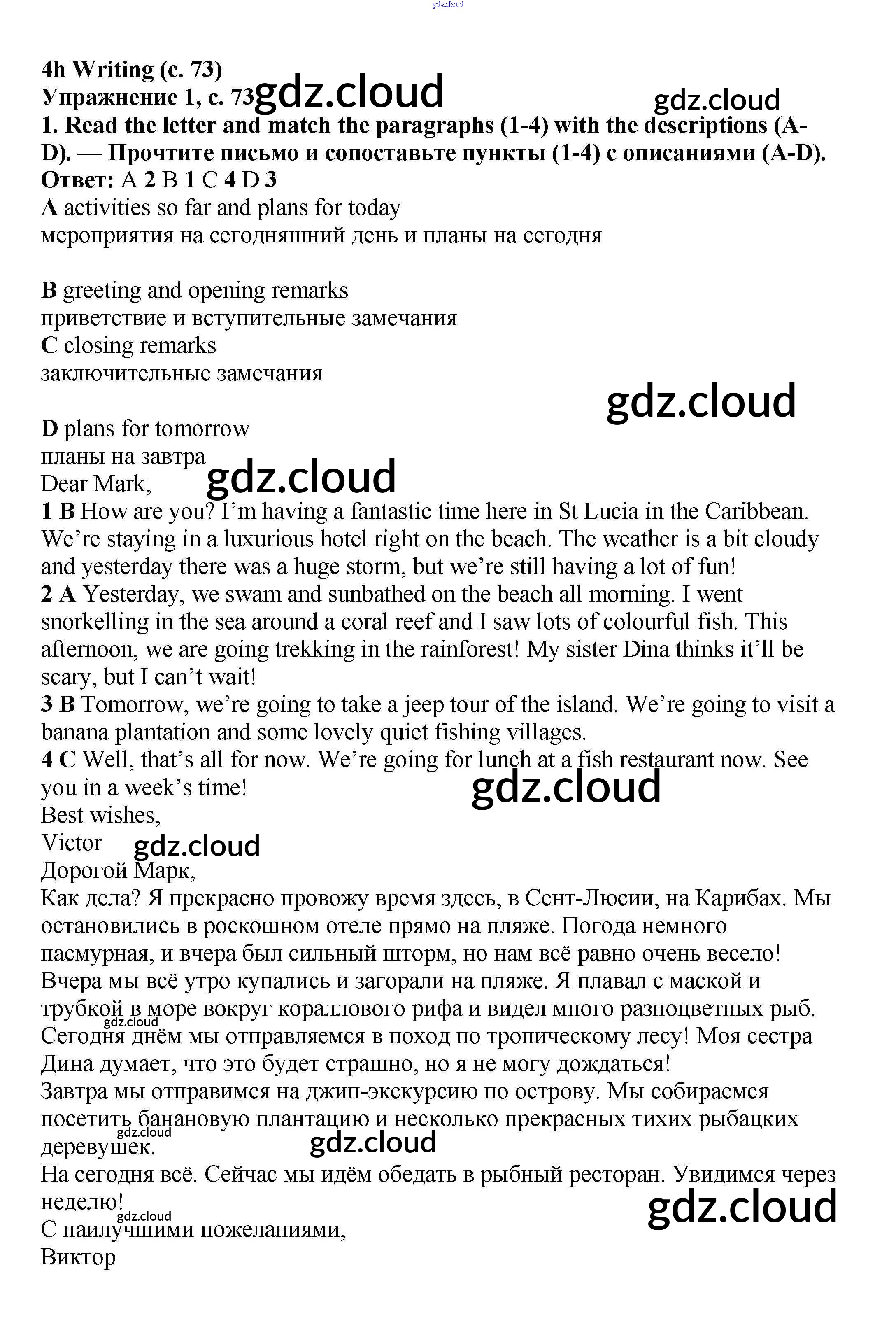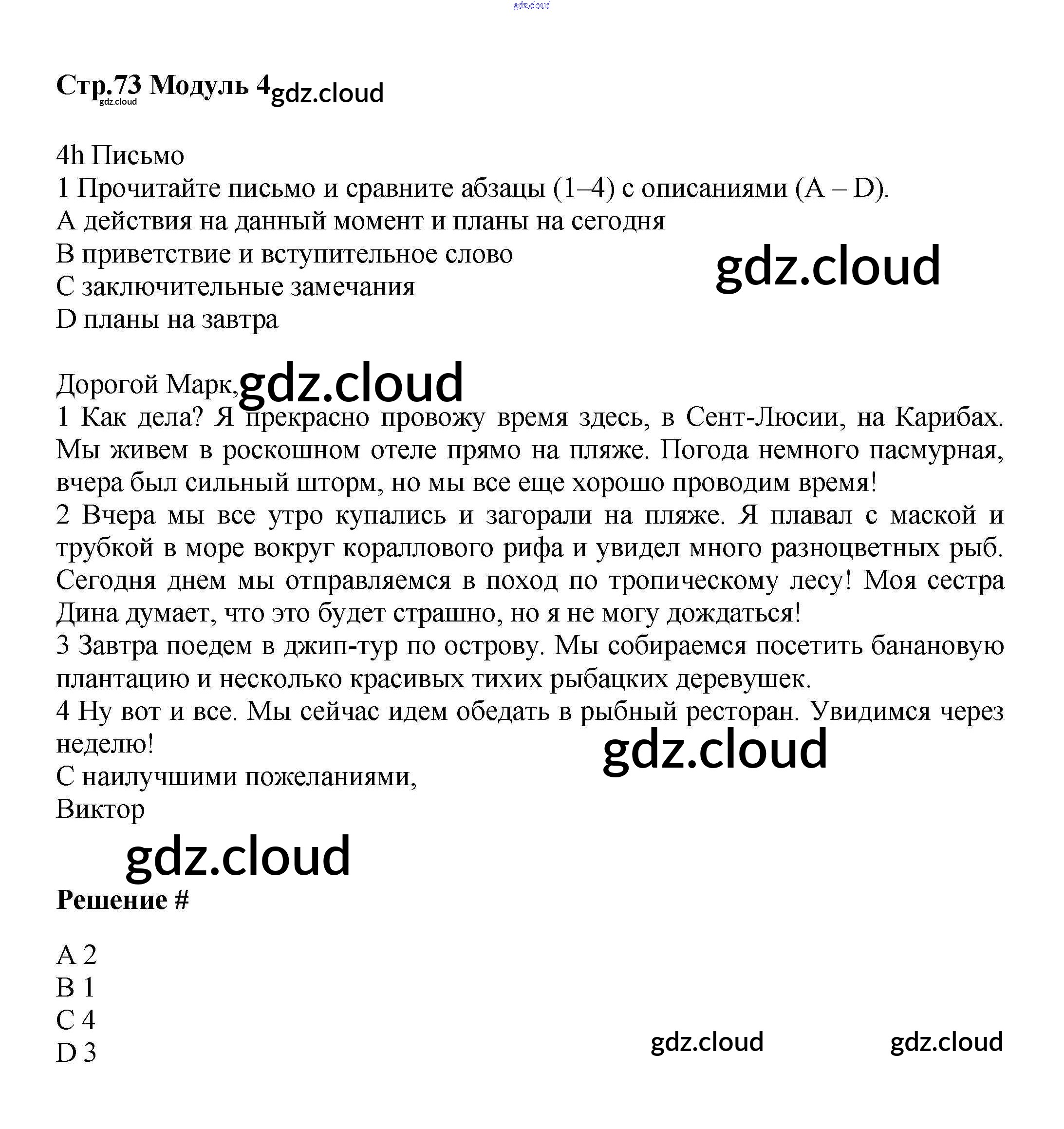 Ответ на задание стр.73 Учебник Английский язык за 6 (шестой) класс Баранова, Дули, Эванс, Копылова, Мильруд Starlight Углубленный уровень 2017