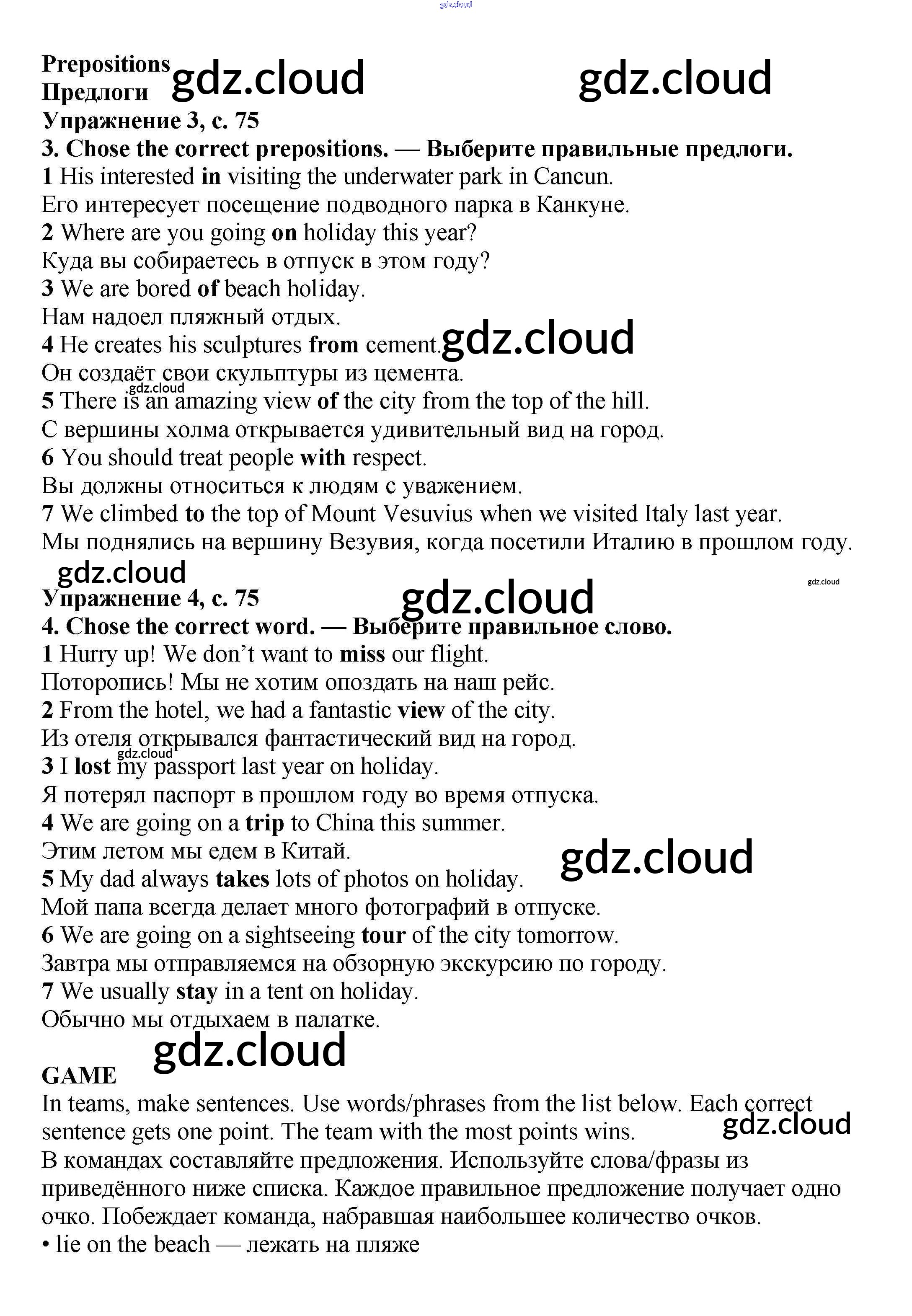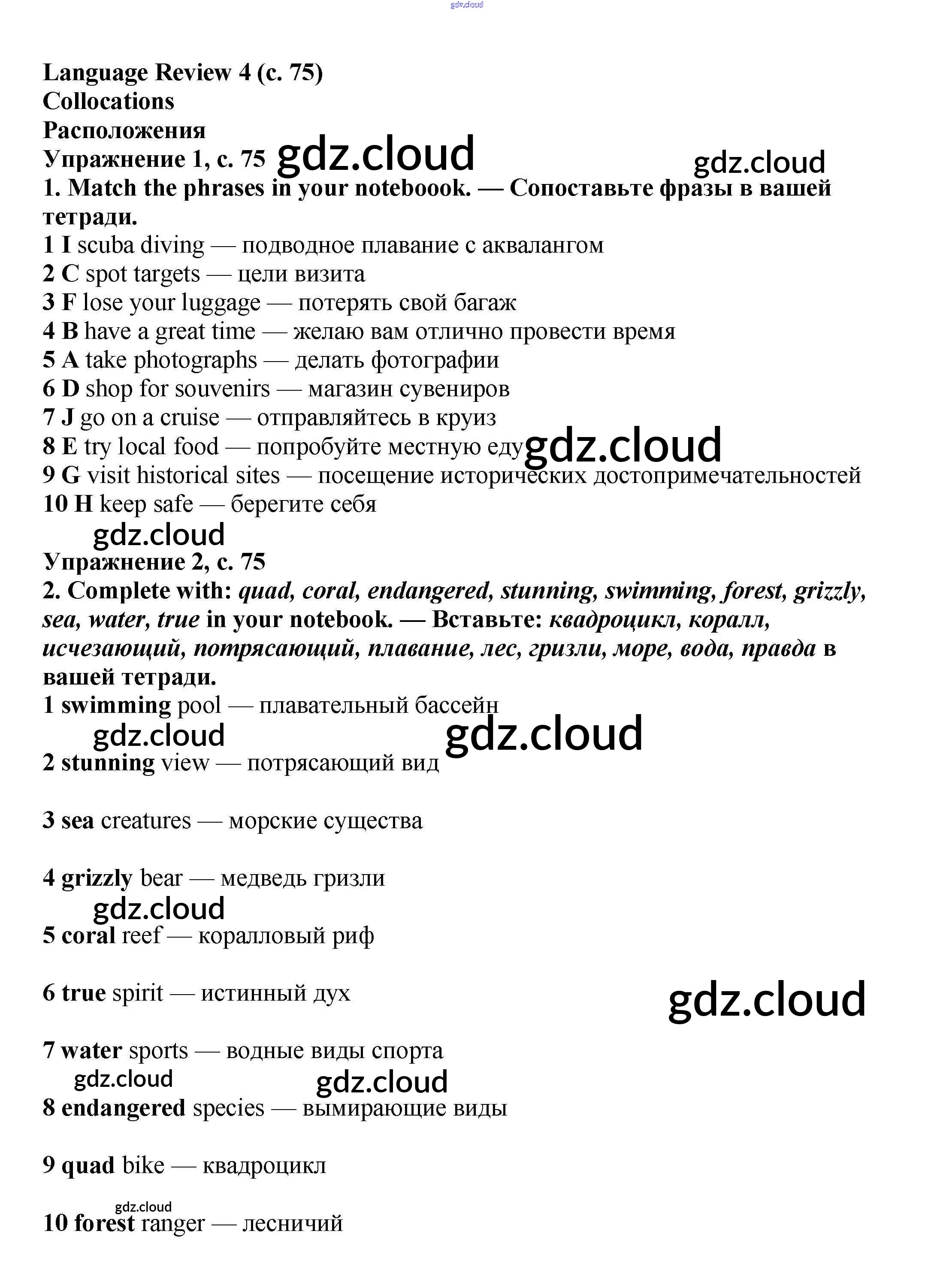 Ответ на задание стр.75 Учебник Английский язык  за 6 (шестой) класс Баранова, Дули, Эванс, Копылова, Мильруд Starlight Углубленный уровень 2017