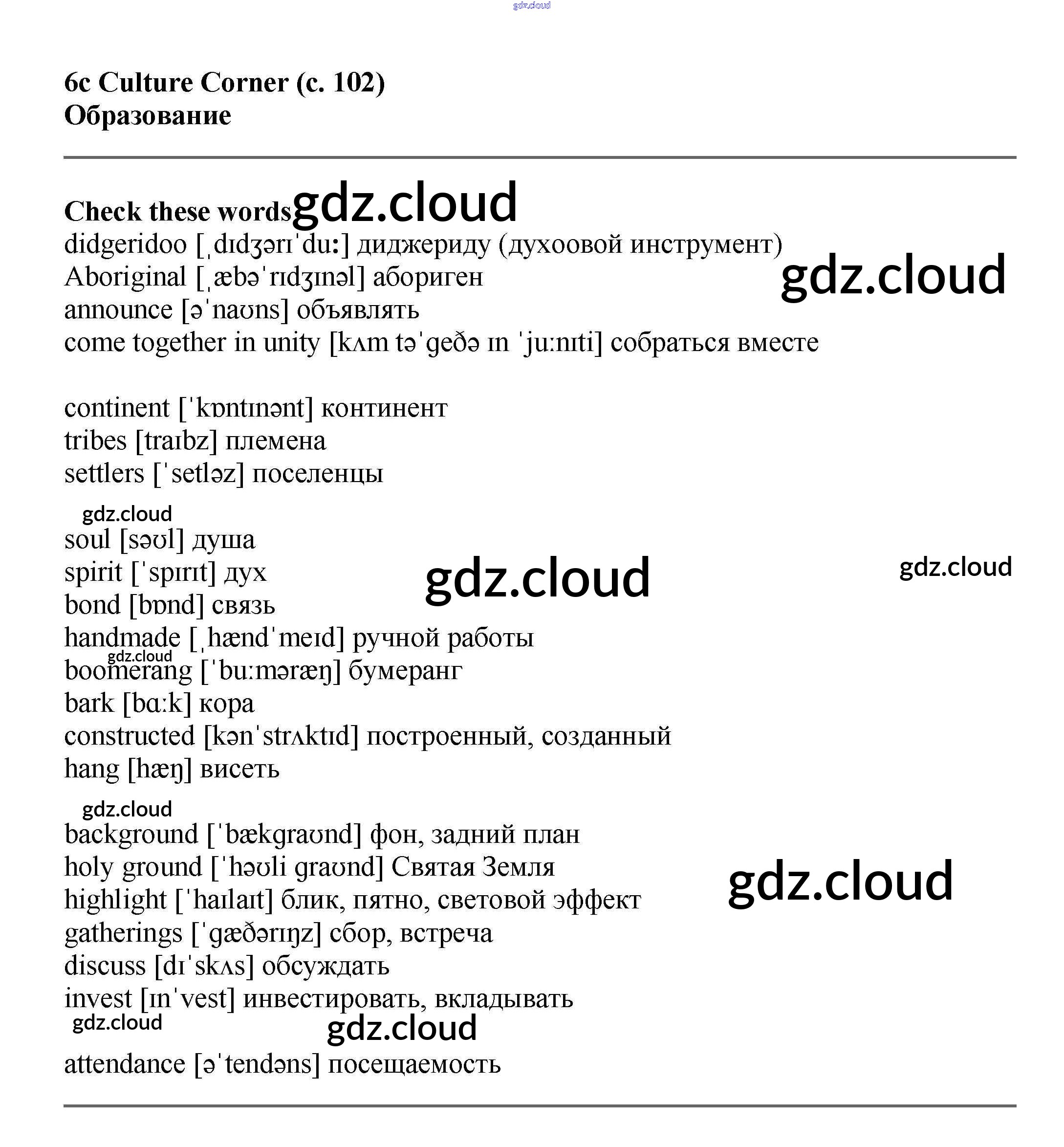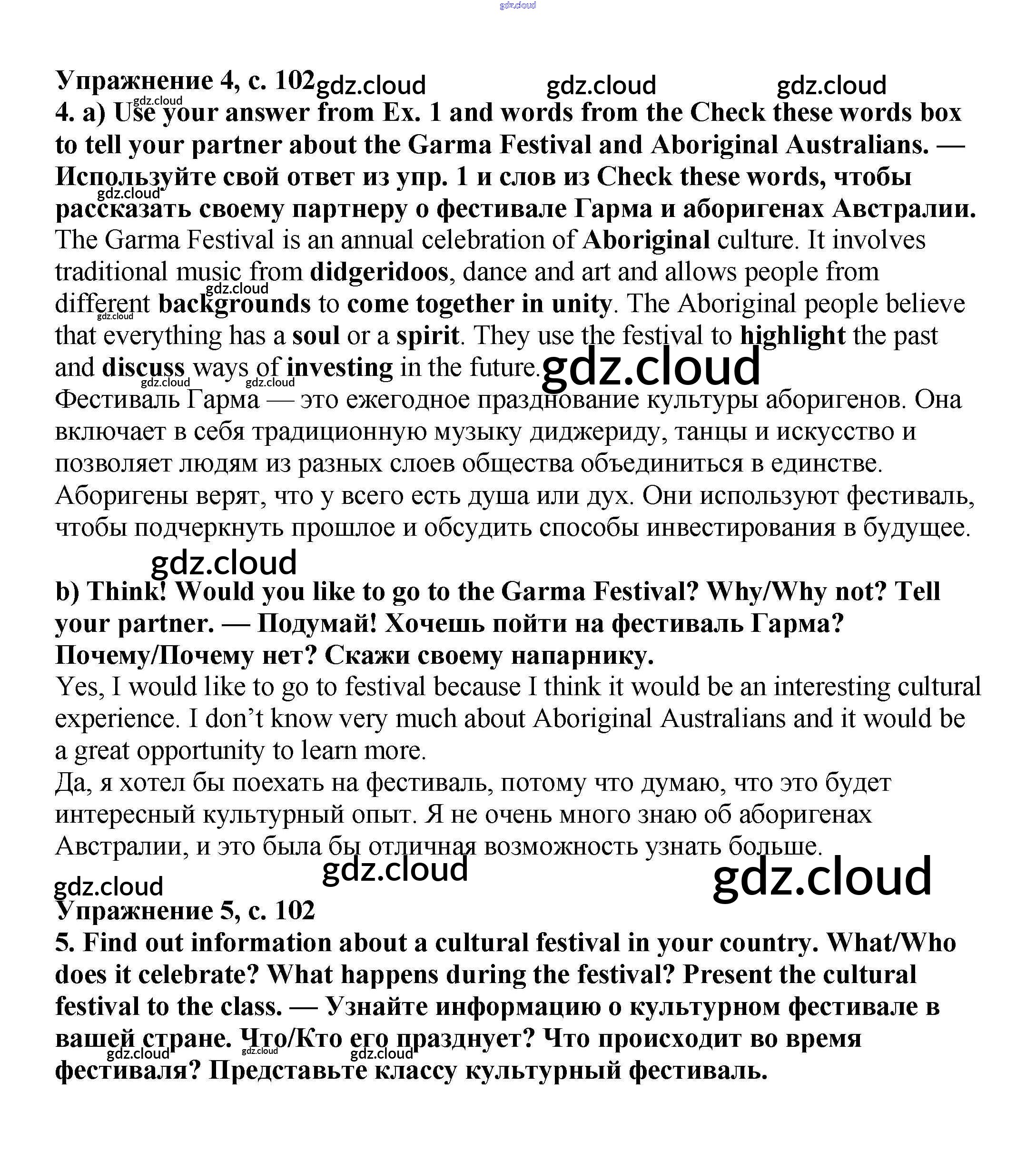 Ответ на задание стр.102 Учебник Английский язык  за 6 (шестой) класс Баранова, Дули, Эванс, Копылова, Мильруд Starlight Углубленный уровень 2017