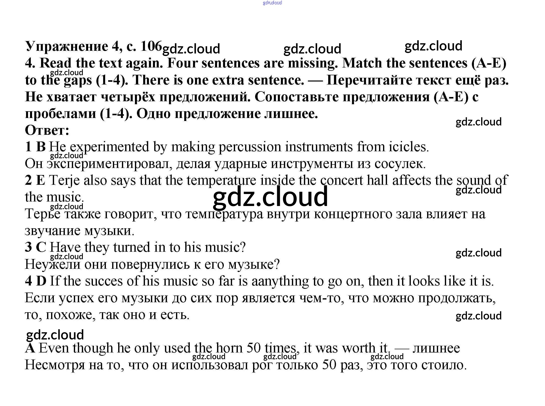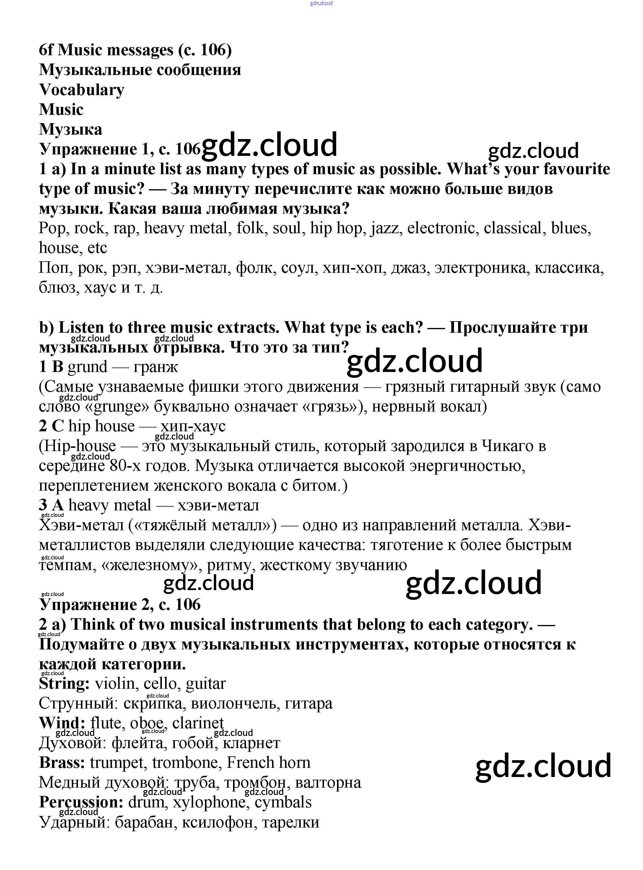 Ответ на задание стр.106-107 Учебник Английский язык  за 6 (шестой) класс Баранова, Дули, Эванс, Копылова, Мильруд Starlight Углубленный уровень 2017