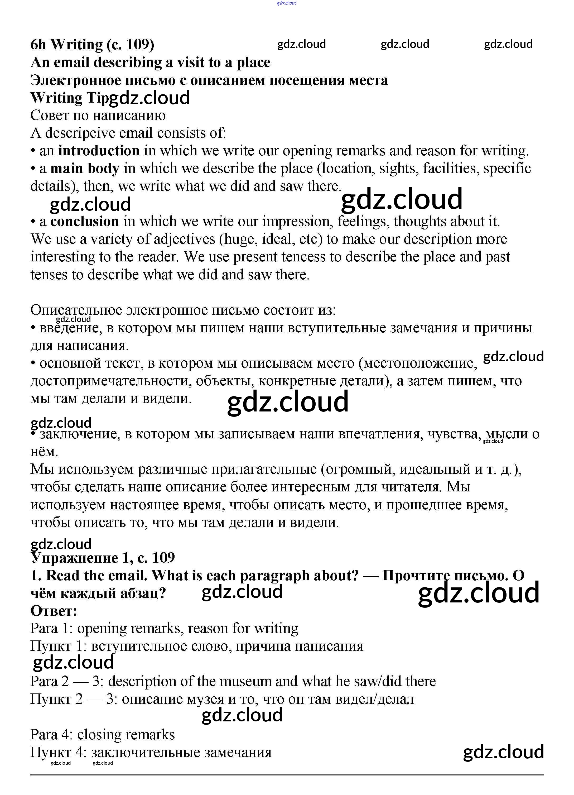 Ответ на задание стр.109 Учебник Английский язык  за 6 (шестой) класс Баранова, Дули, Эванс, Копылова, Мильруд Starlight Углубленный уровень 2017