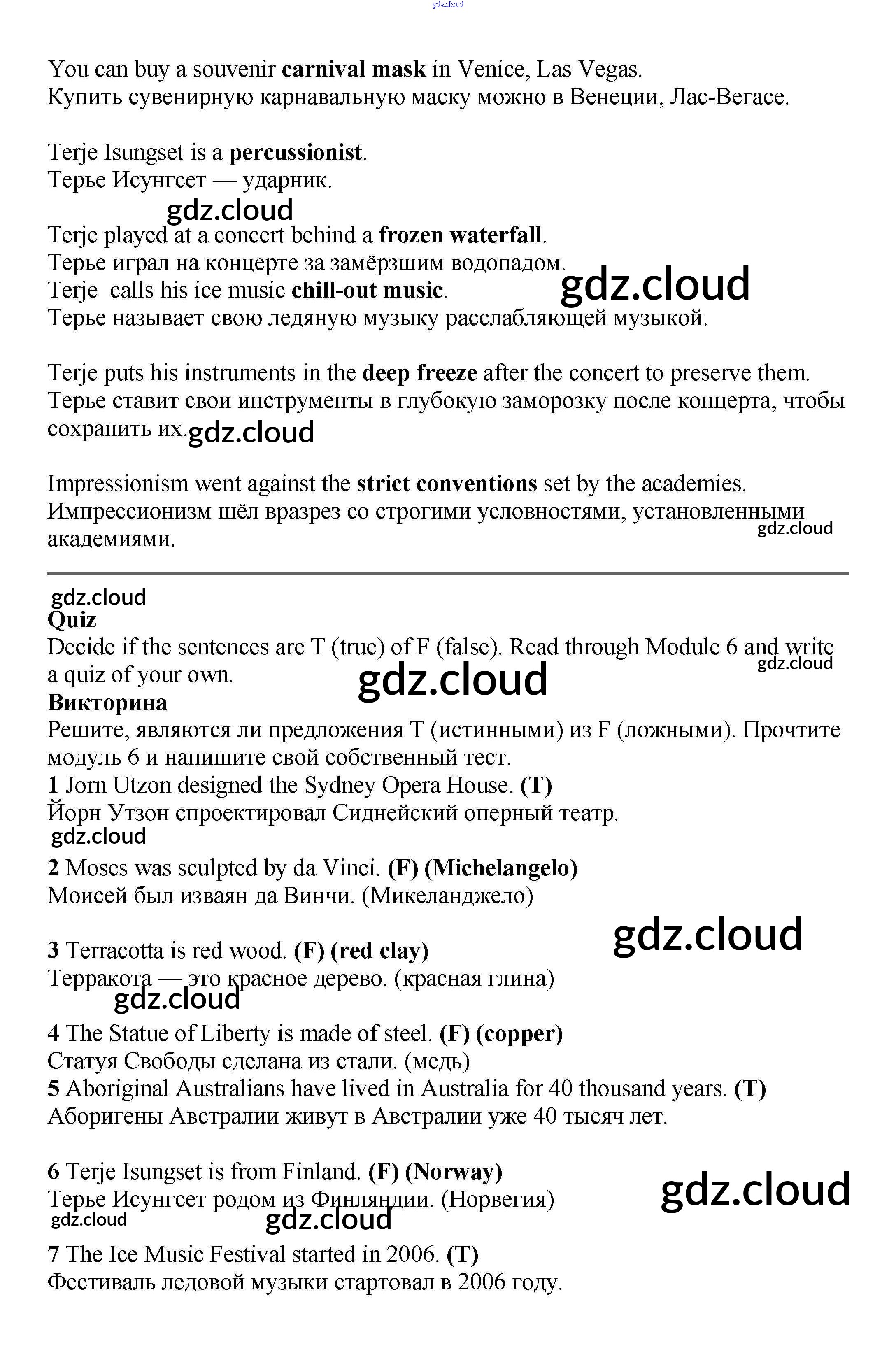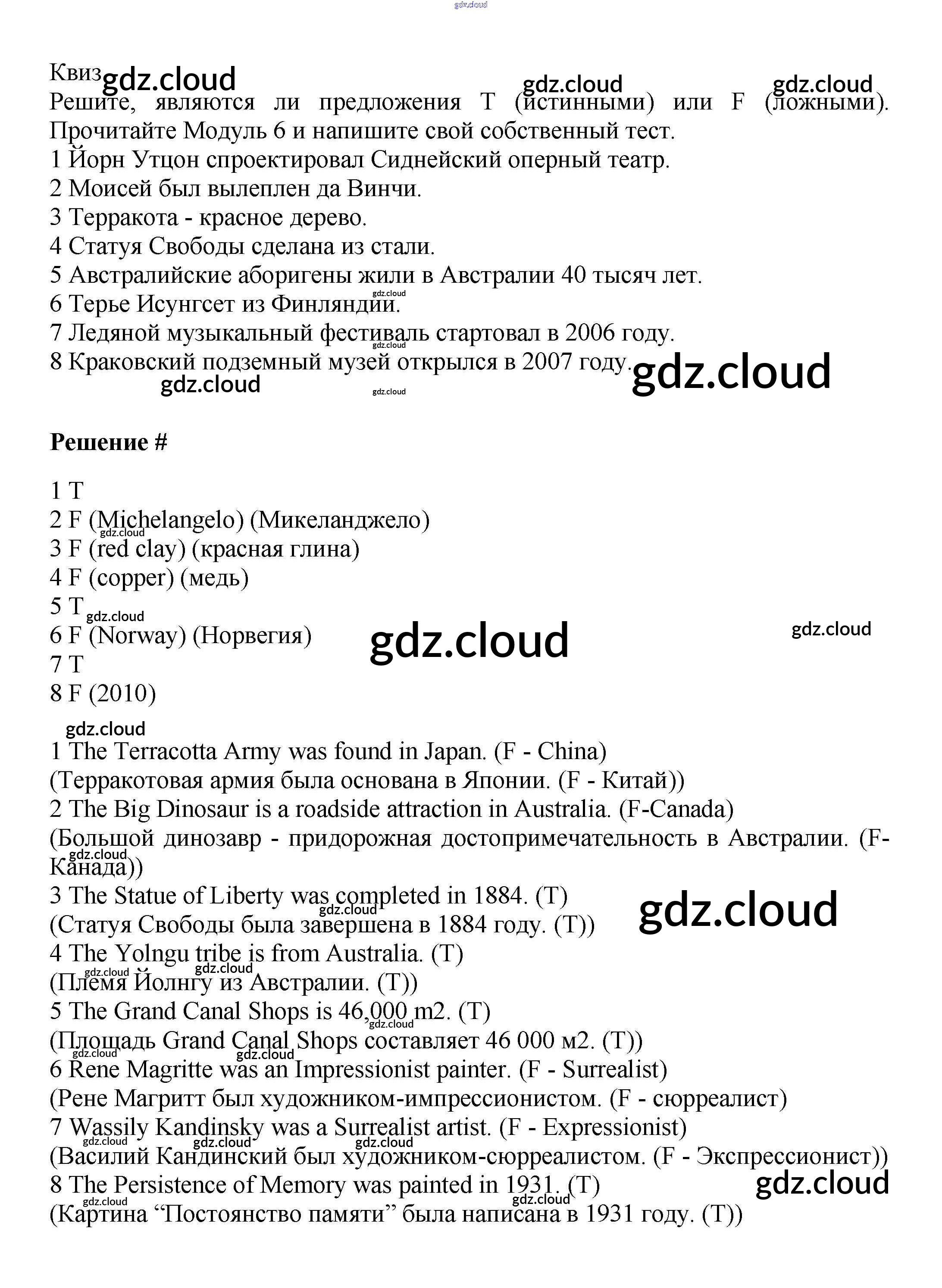 Ответы к Module 6. Art & Culture  по Английскому языку 6 класс Учебник Баранова Starlight Углубленный уровень  Просвещение