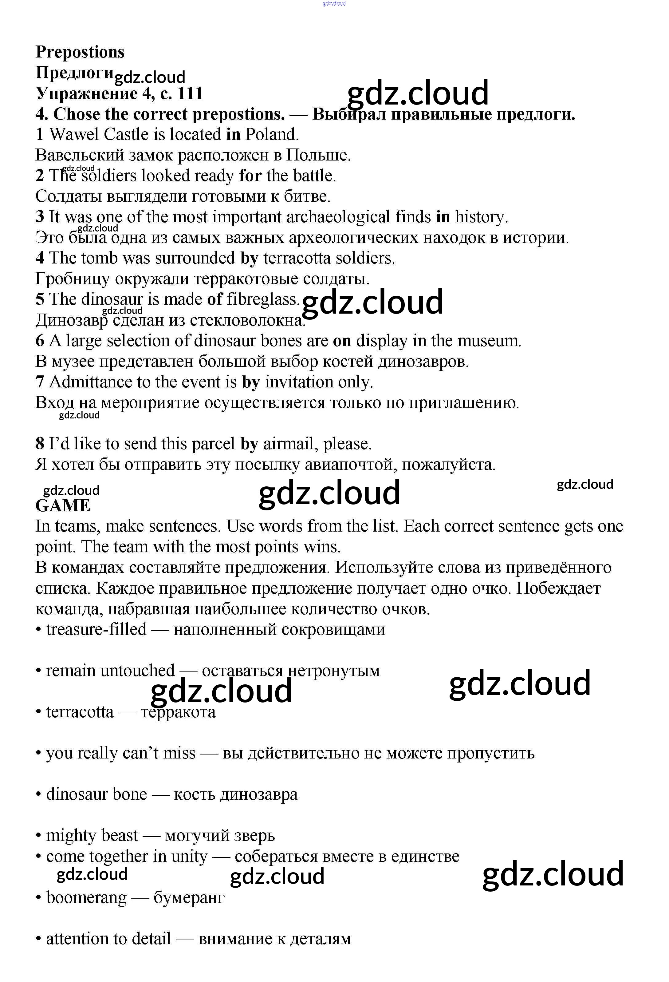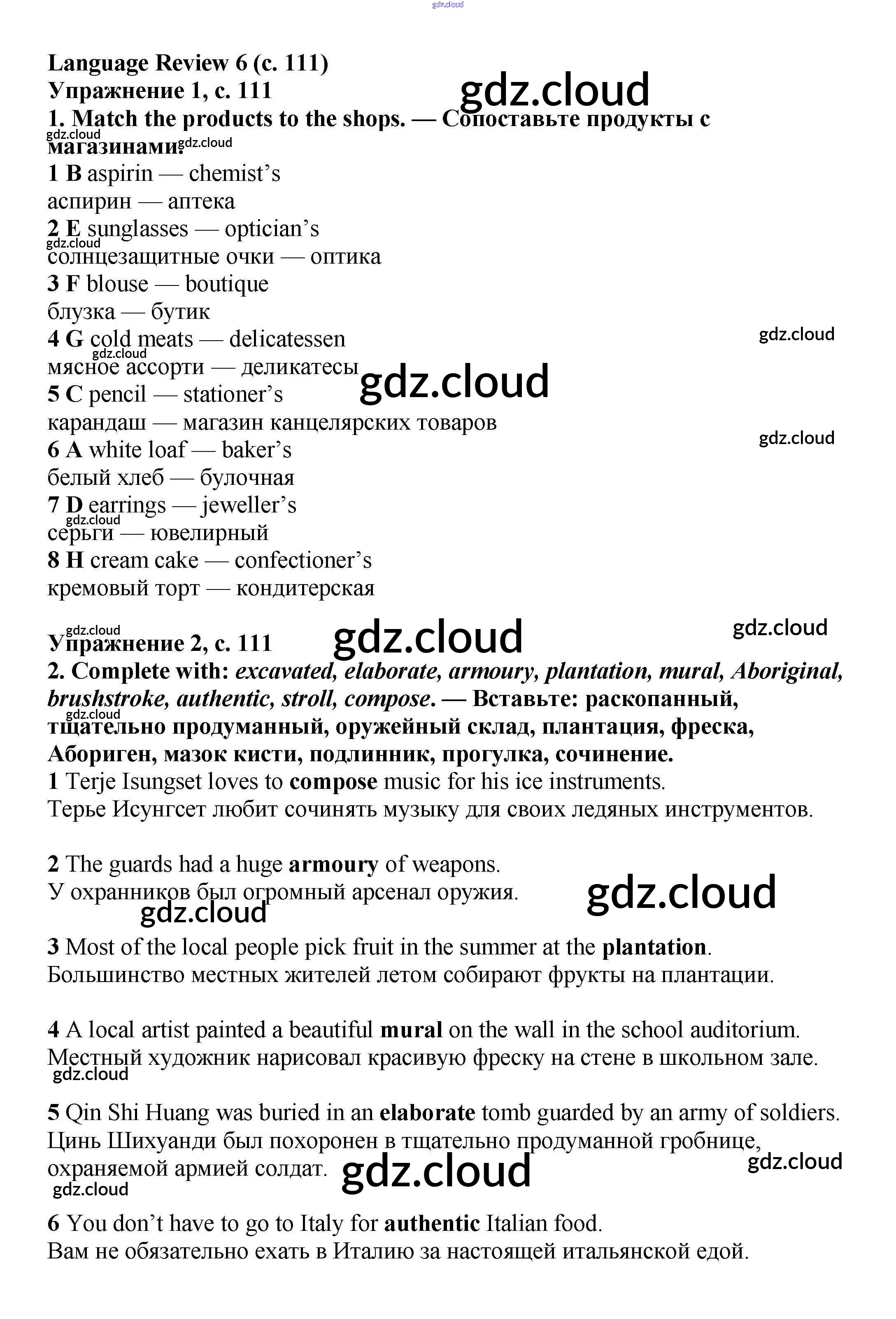 Ответ на задание стр.111 Учебник Английский язык  за 6 (шестой) класс Баранова, Дули, Эванс, Копылова, Мильруд Starlight Углубленный уровень 2017
