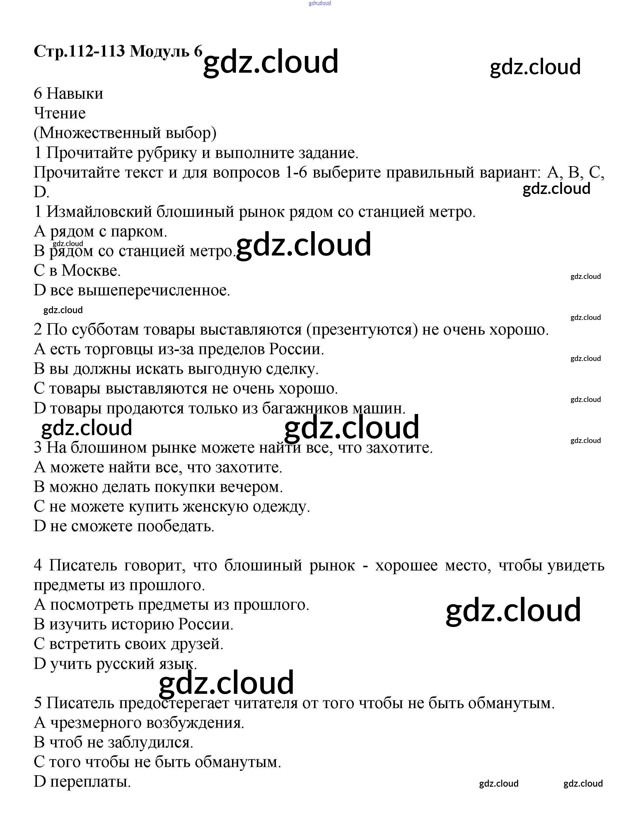 Ответ на задание стр.112-113 Учебник Английский язык  за 6 (шестой) класс Баранова, Дули, Эванс, Копылова, Мильруд Starlight Углубленный уровень 2017