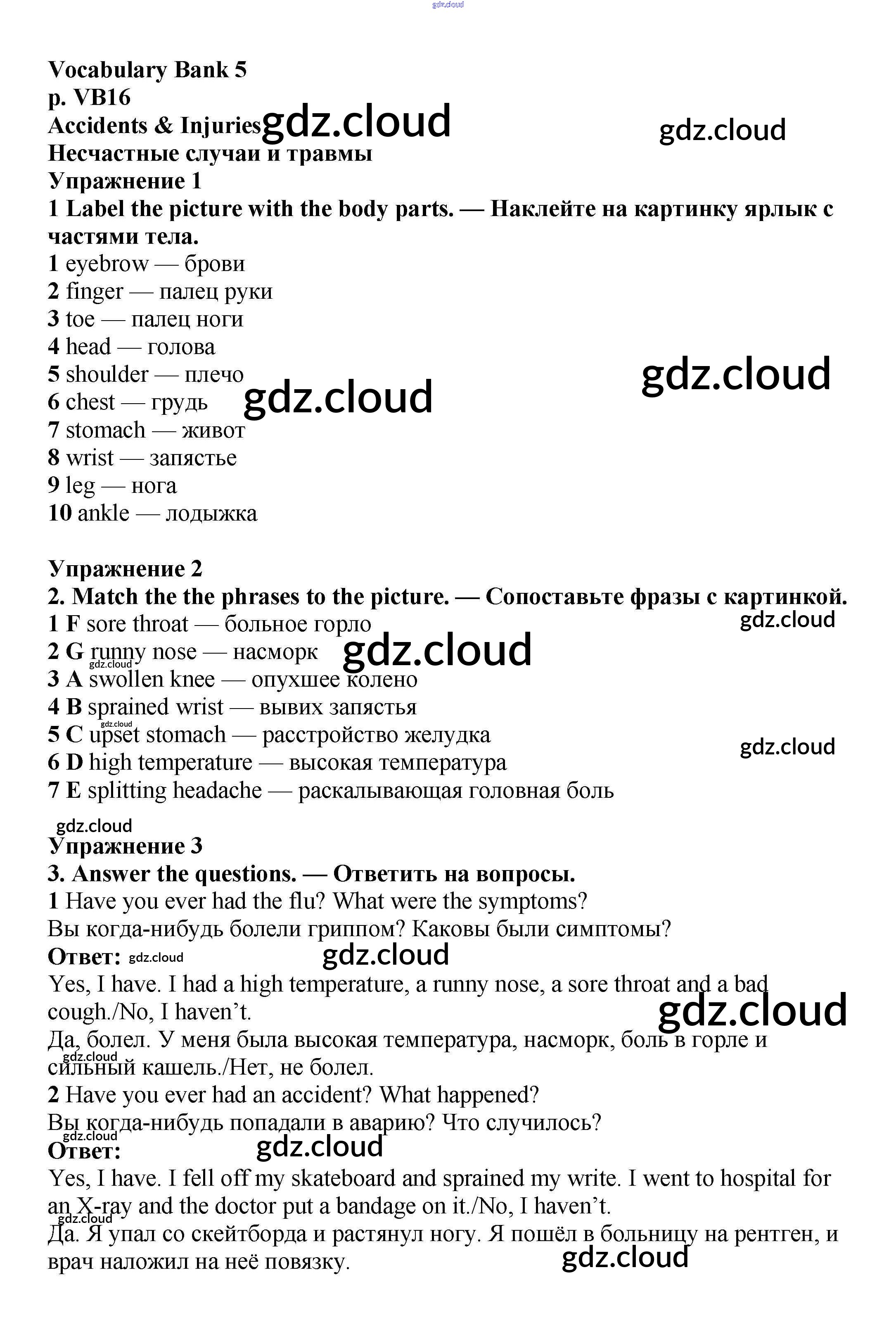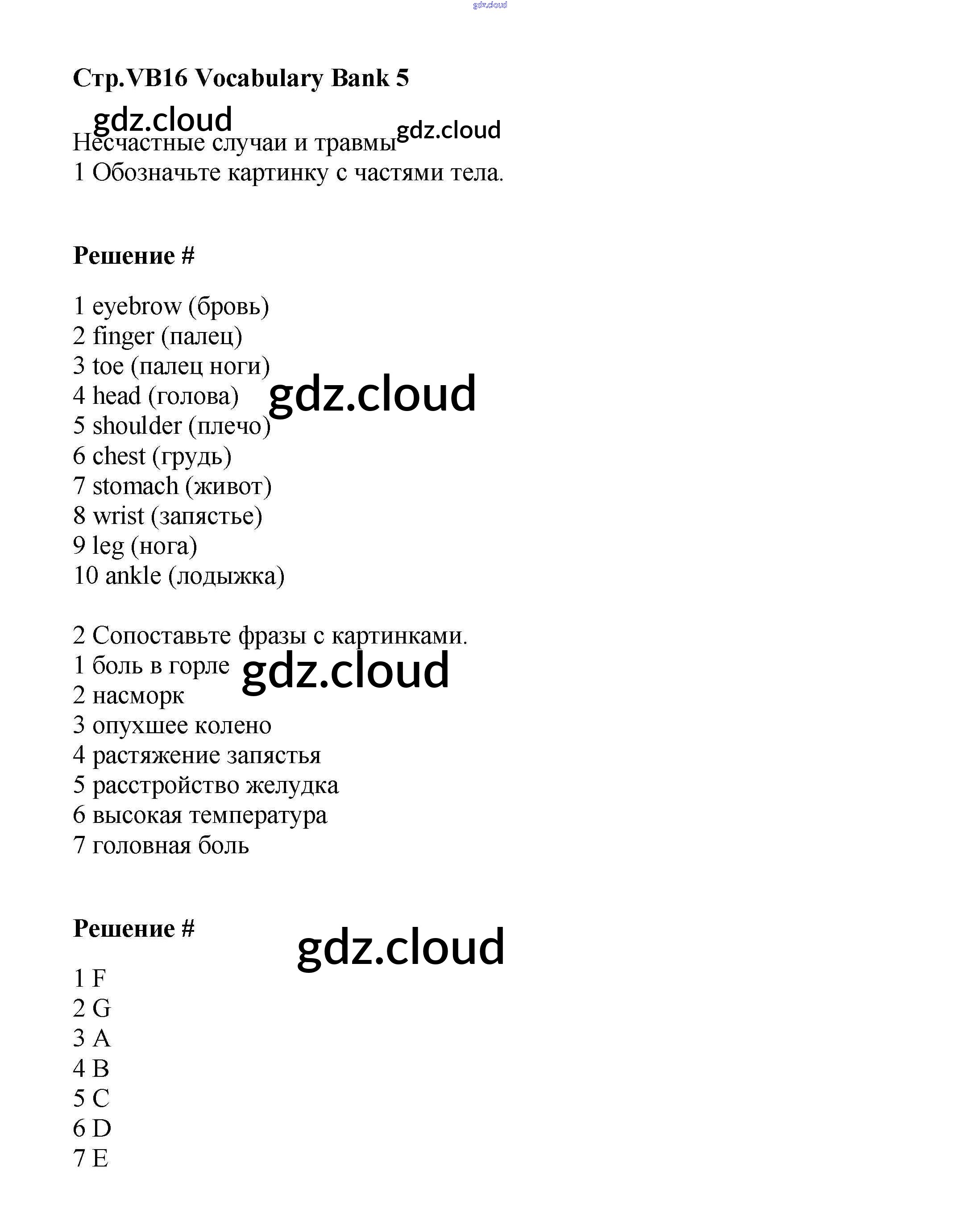 Ответы к Vocabulary Bank  по Английскому языку 6 класс Учебник Баранова Starlight Углубленный уровень  Просвещение