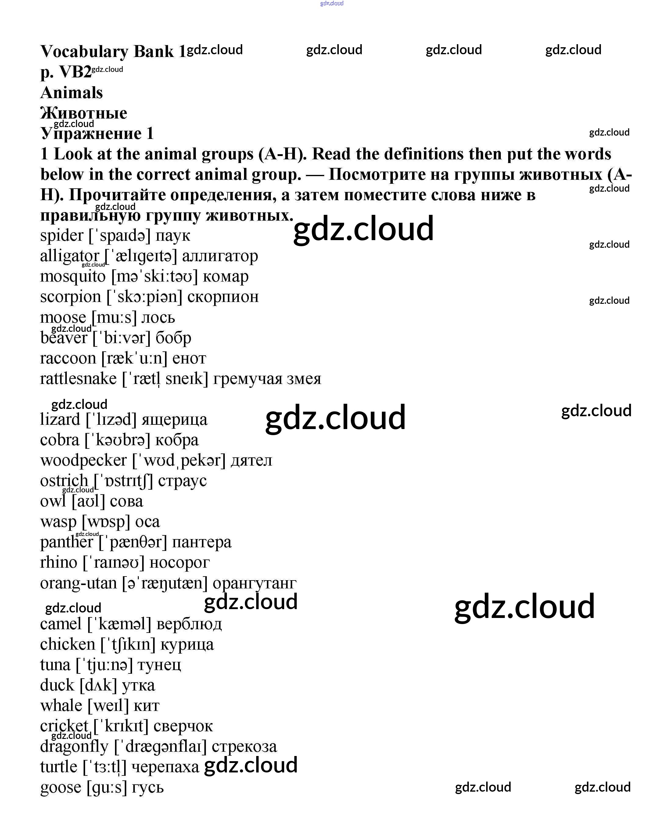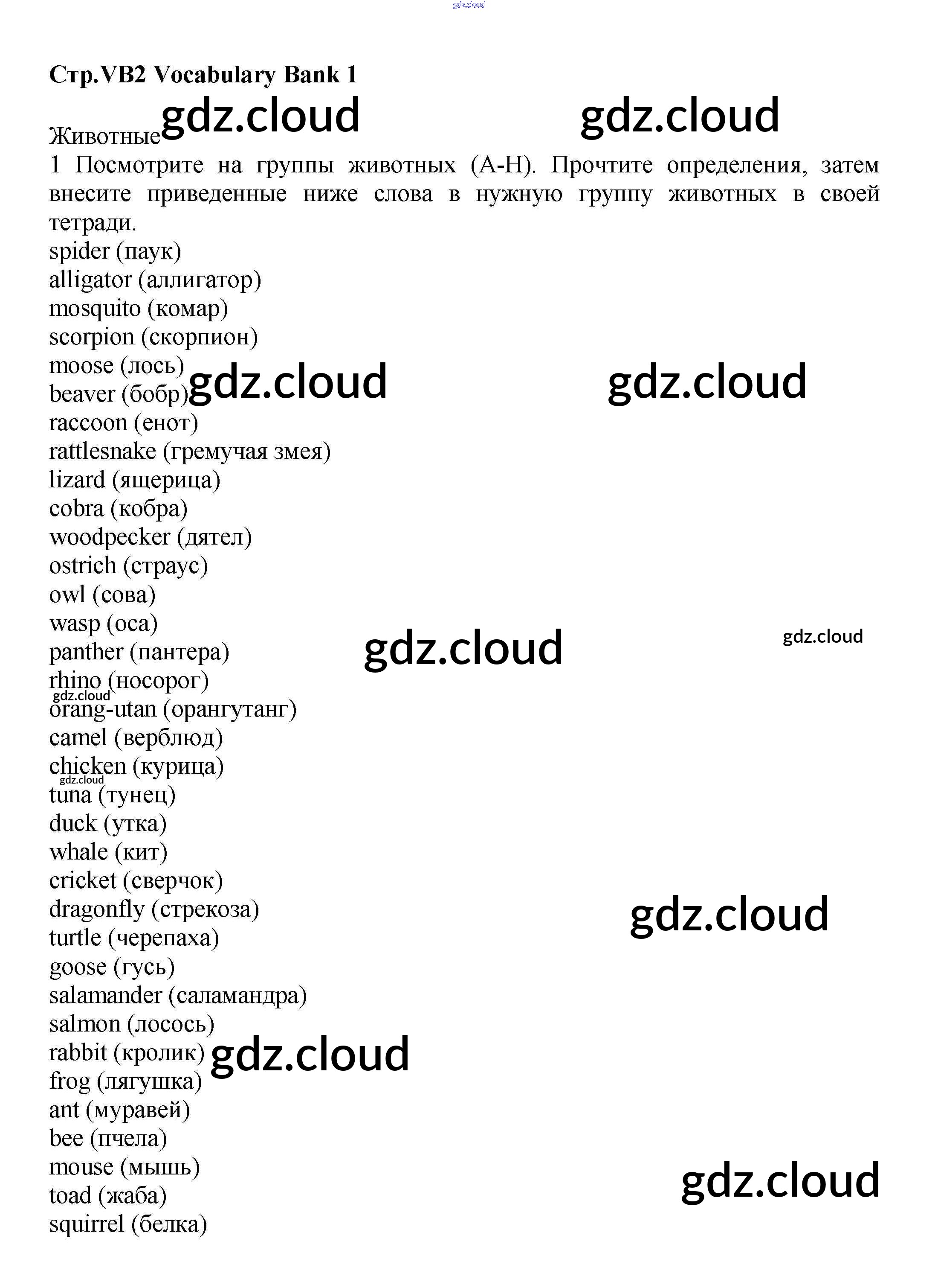 Ответы к Vocabulary Bank  по Английскому языку 6 класс Учебник Баранова Starlight Углубленный уровень  Просвещение