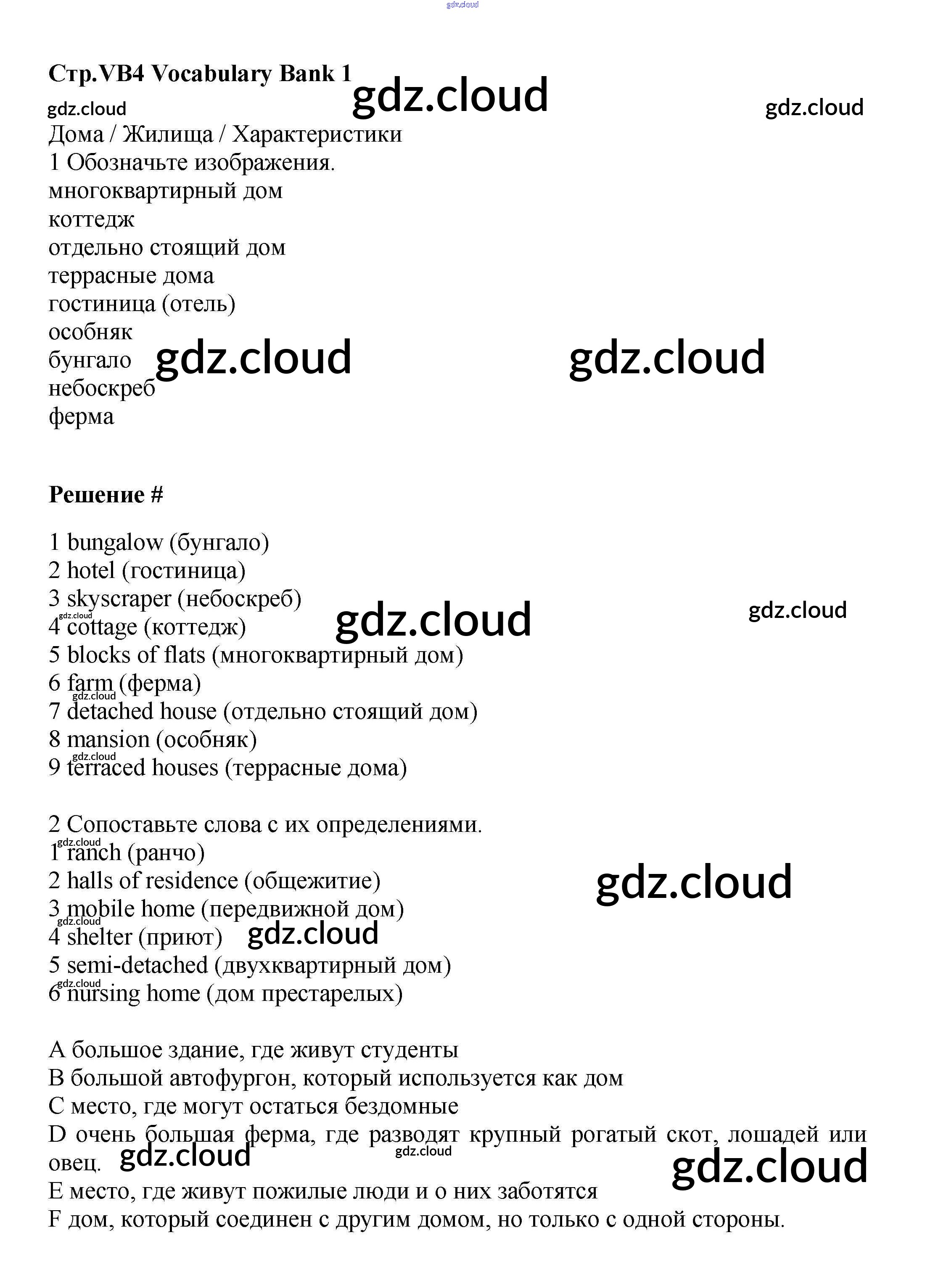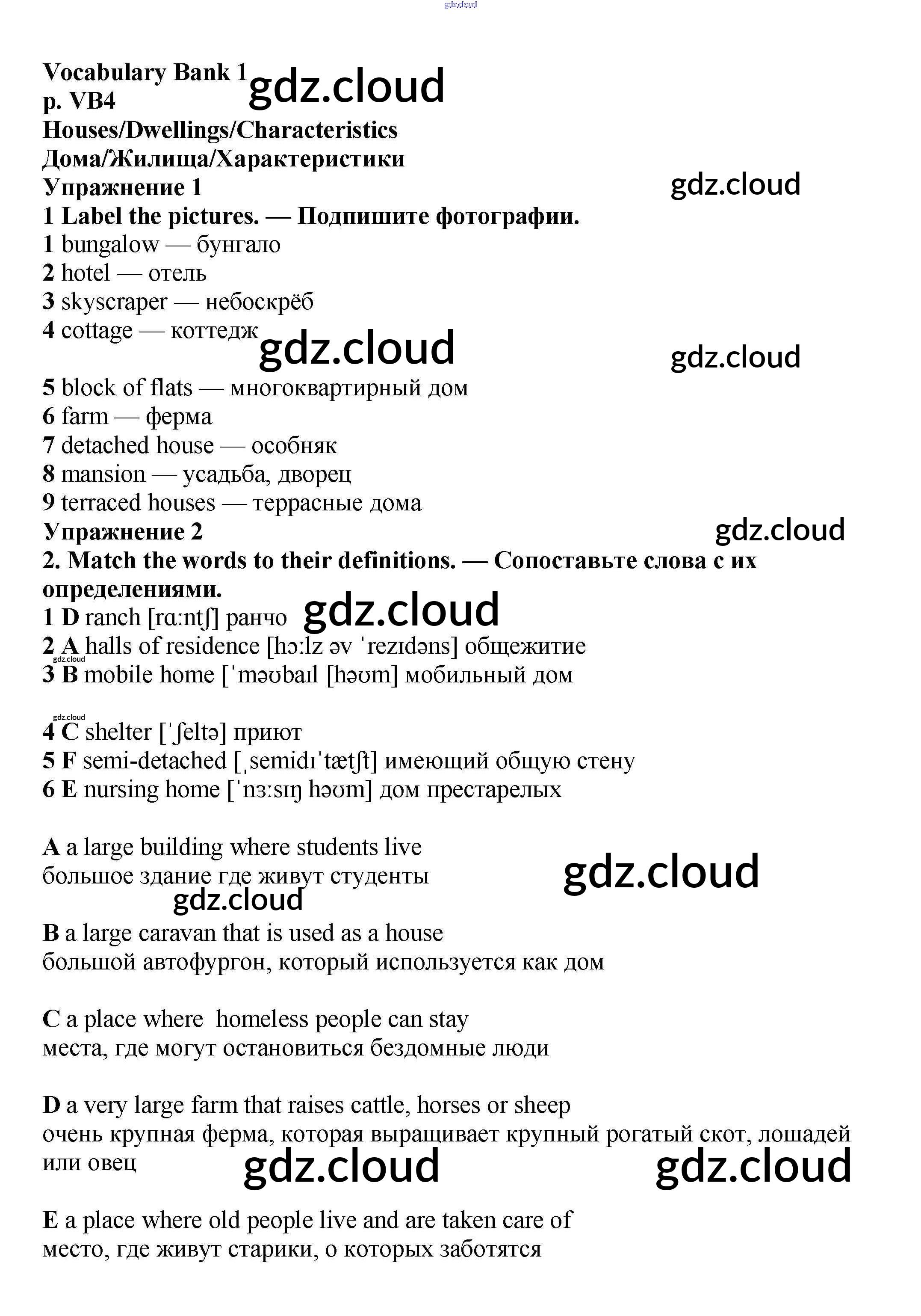 Ответы к Vocabulary Bank  по Английскому языку 6 класс Учебник Баранова Starlight Углубленный уровень  Просвещение