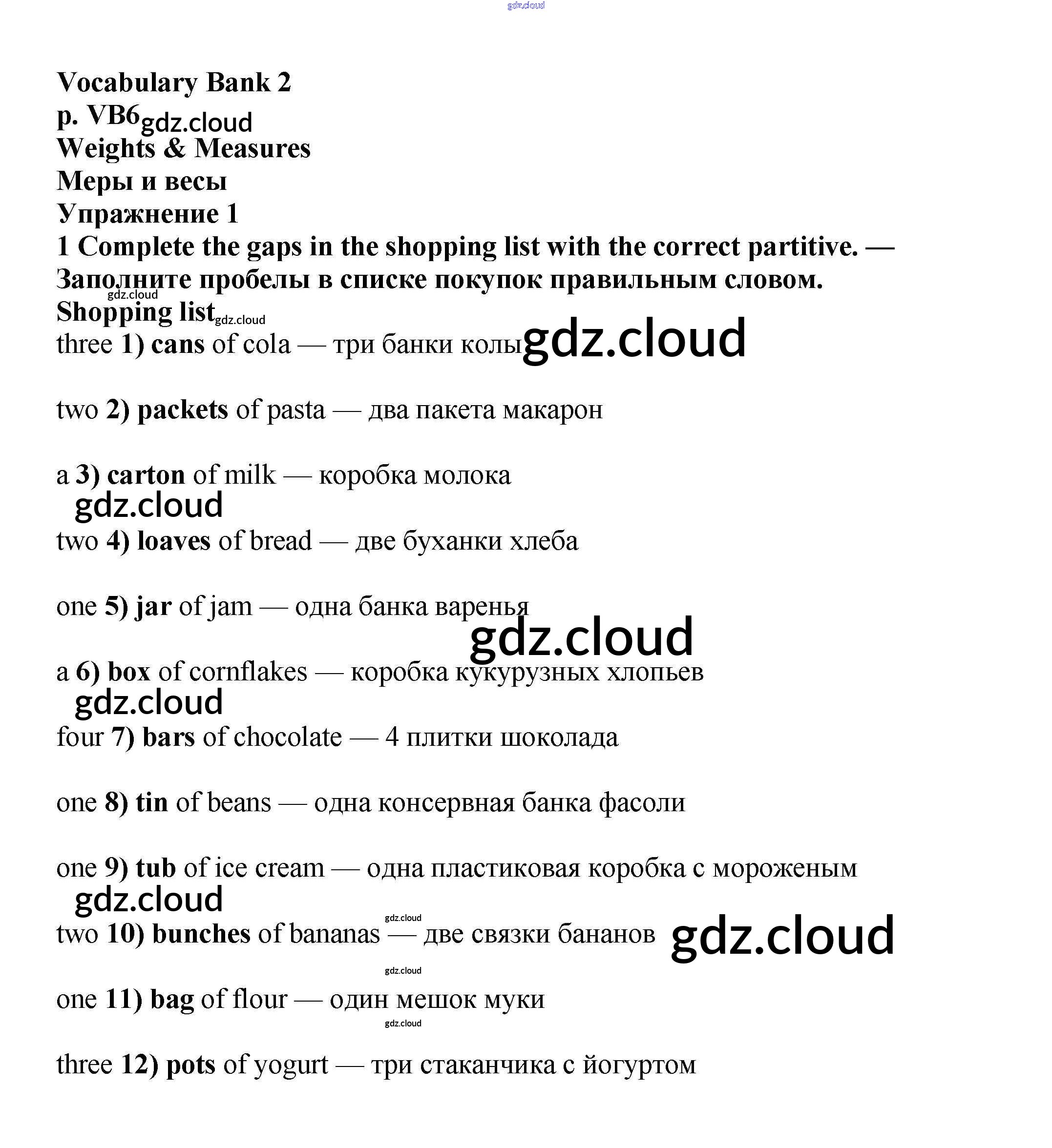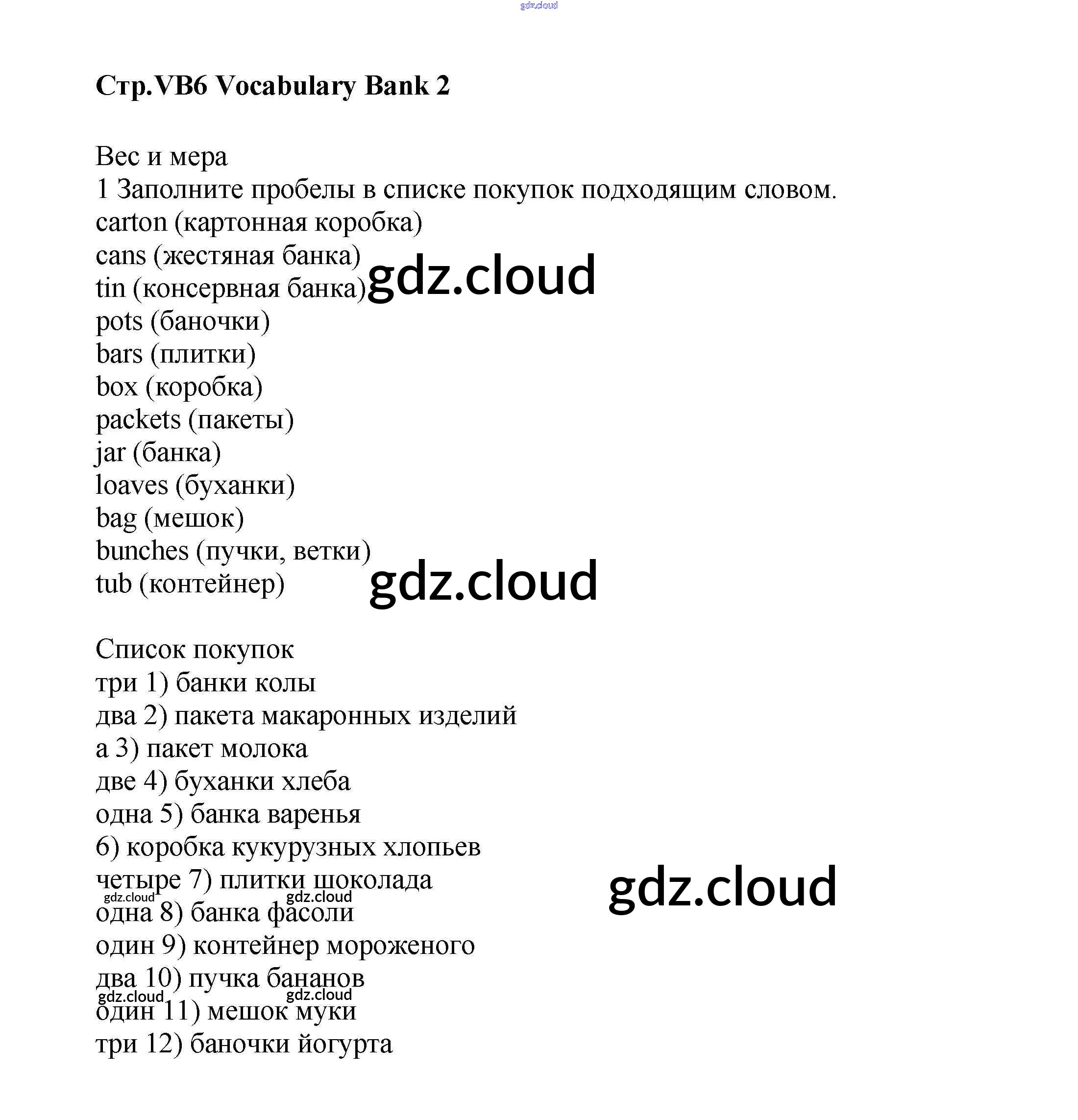 Ответы к Vocabulary Bank  по Английскому языку 6 класс Учебник Баранова Starlight Углубленный уровень  Просвещение