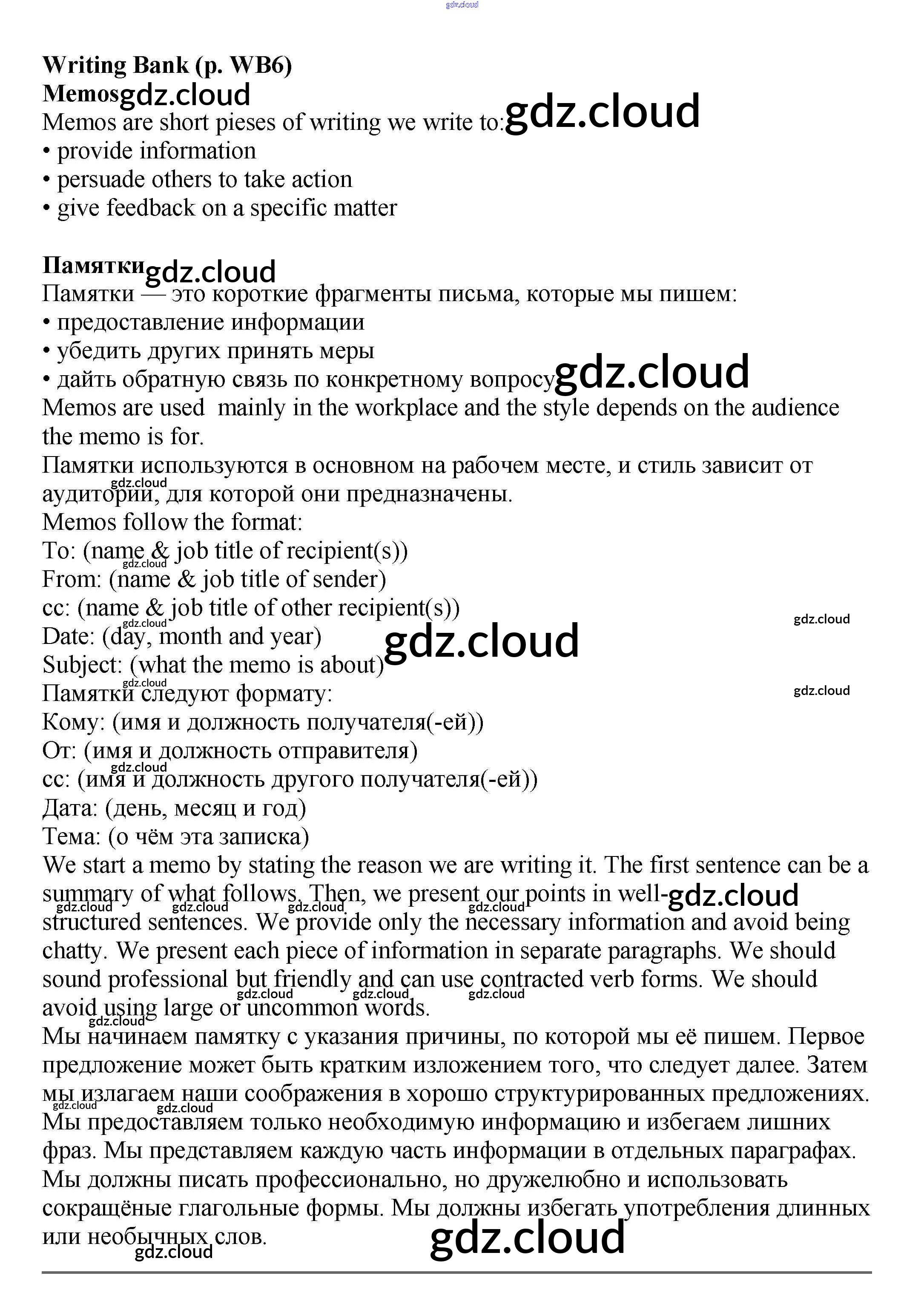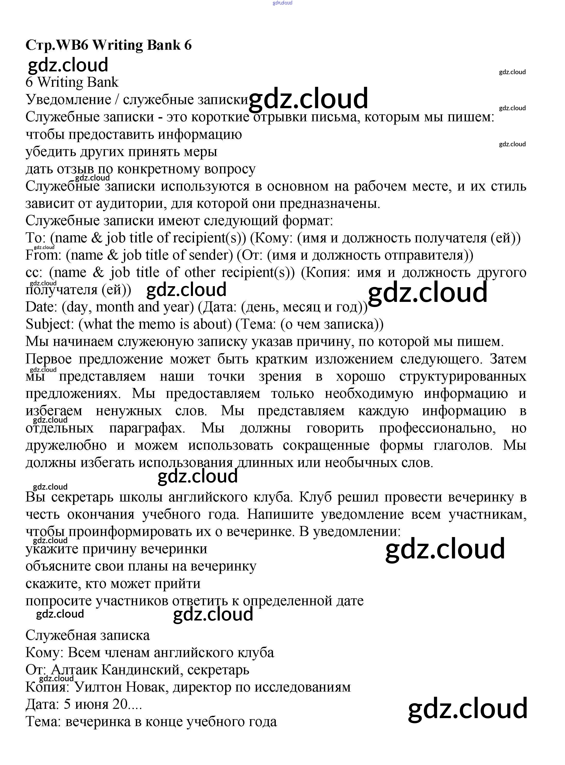 Ответы к Writing Bank  по Английскому языку 6 класс Учебник Баранова Starlight Углубленный уровень  Просвещение