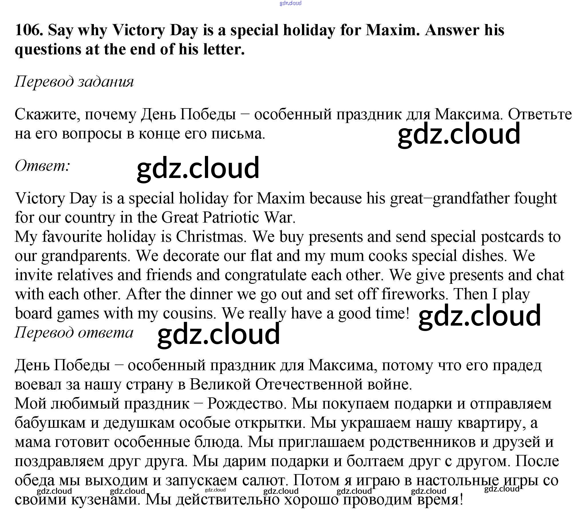 Ответ на задание 106 Учебник Английский язык  за 6 (шестой) класс Биболетова, Денисенко, Трубанева Enjoy English  2015, 2019