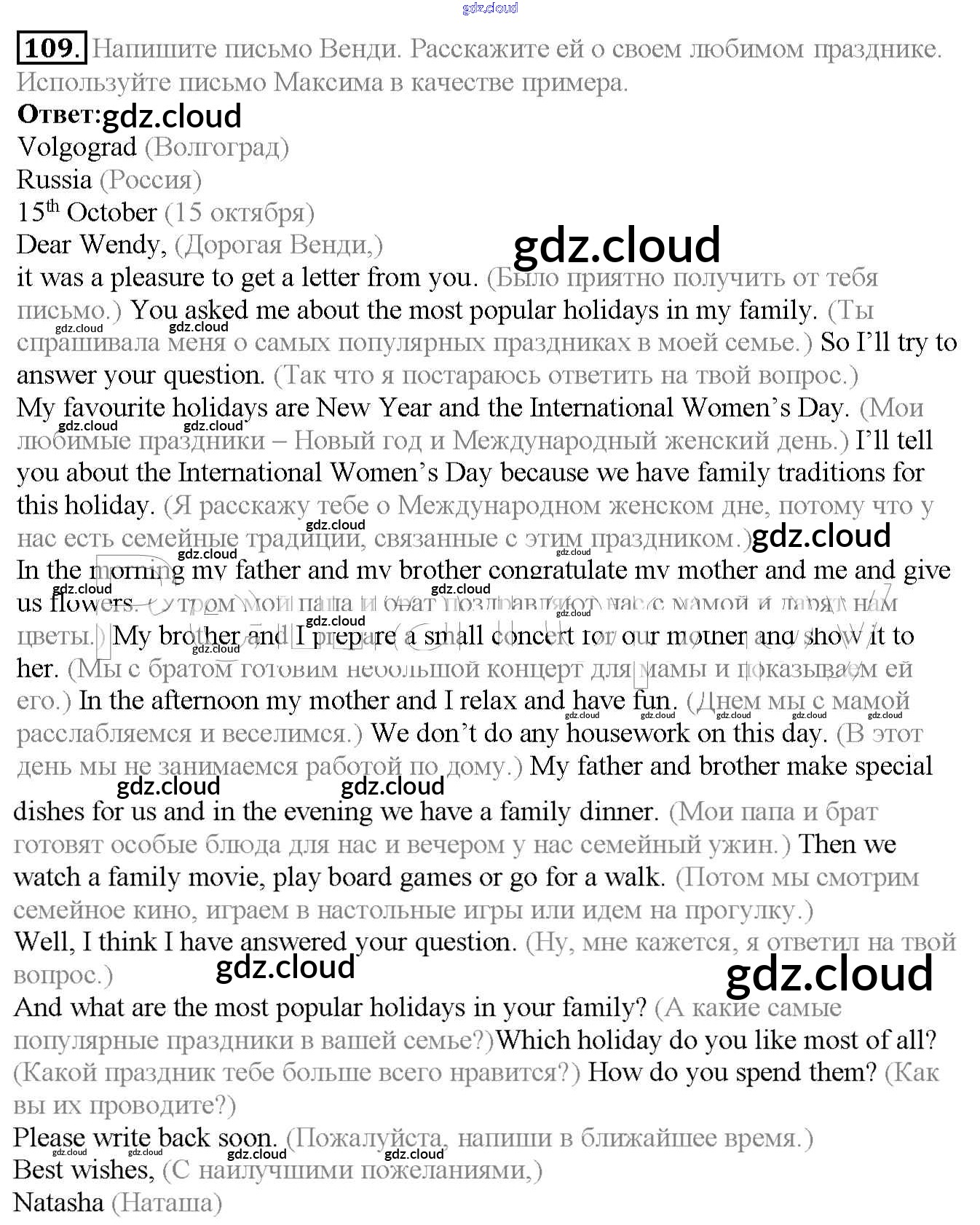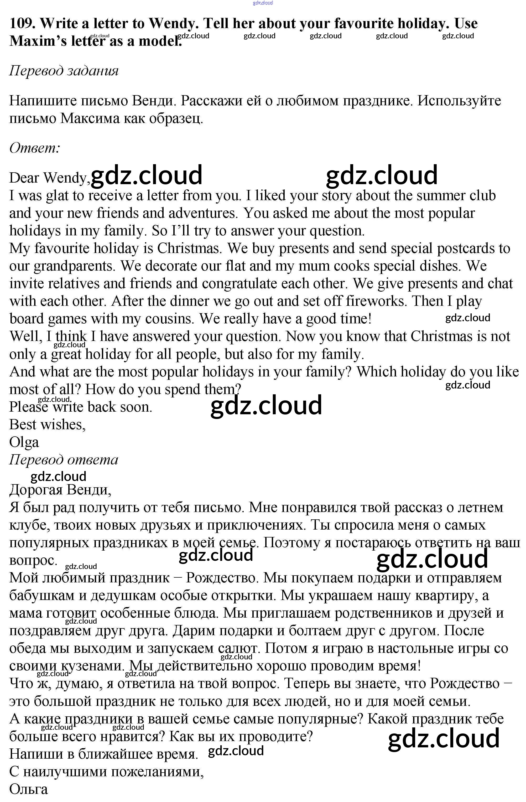 Ответ на задание 109 Учебник Английский язык  за 6 (шестой) класс Биболетова, Денисенко, Трубанева Enjoy English  2015, 2019