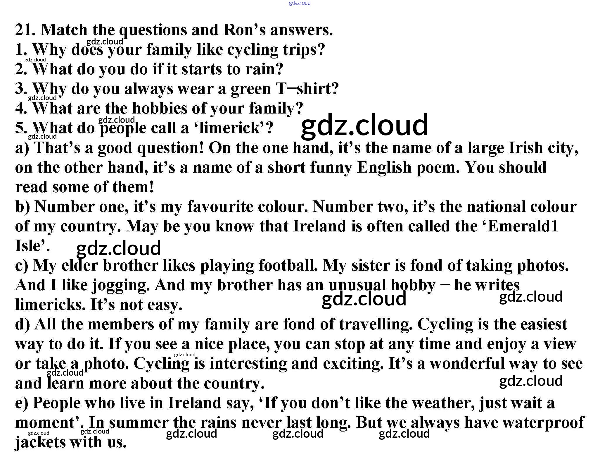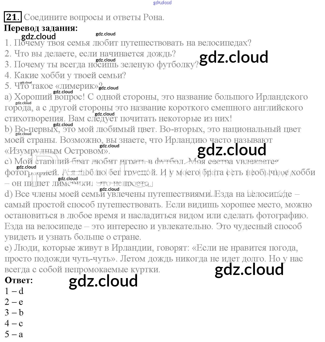 Ответ на задание 21 Учебник Английский язык  за 6 (шестой) класс Биболетова, Денисенко, Трубанева Enjoy English  2015, 2019