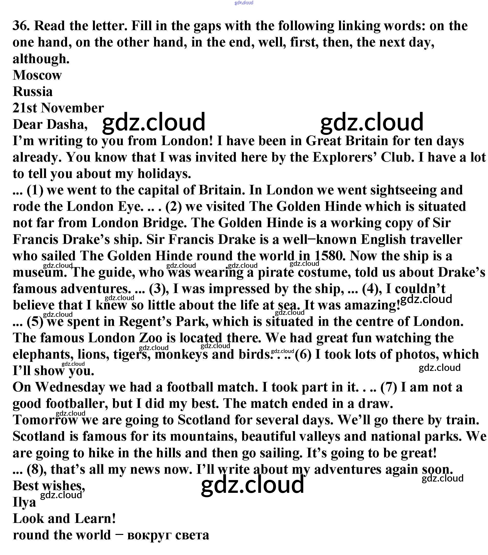 Ответ на задание 36 Учебник Английский язык  за 6 (шестой) класс Биболетова, Денисенко, Трубанева Enjoy English  2015, 2019
