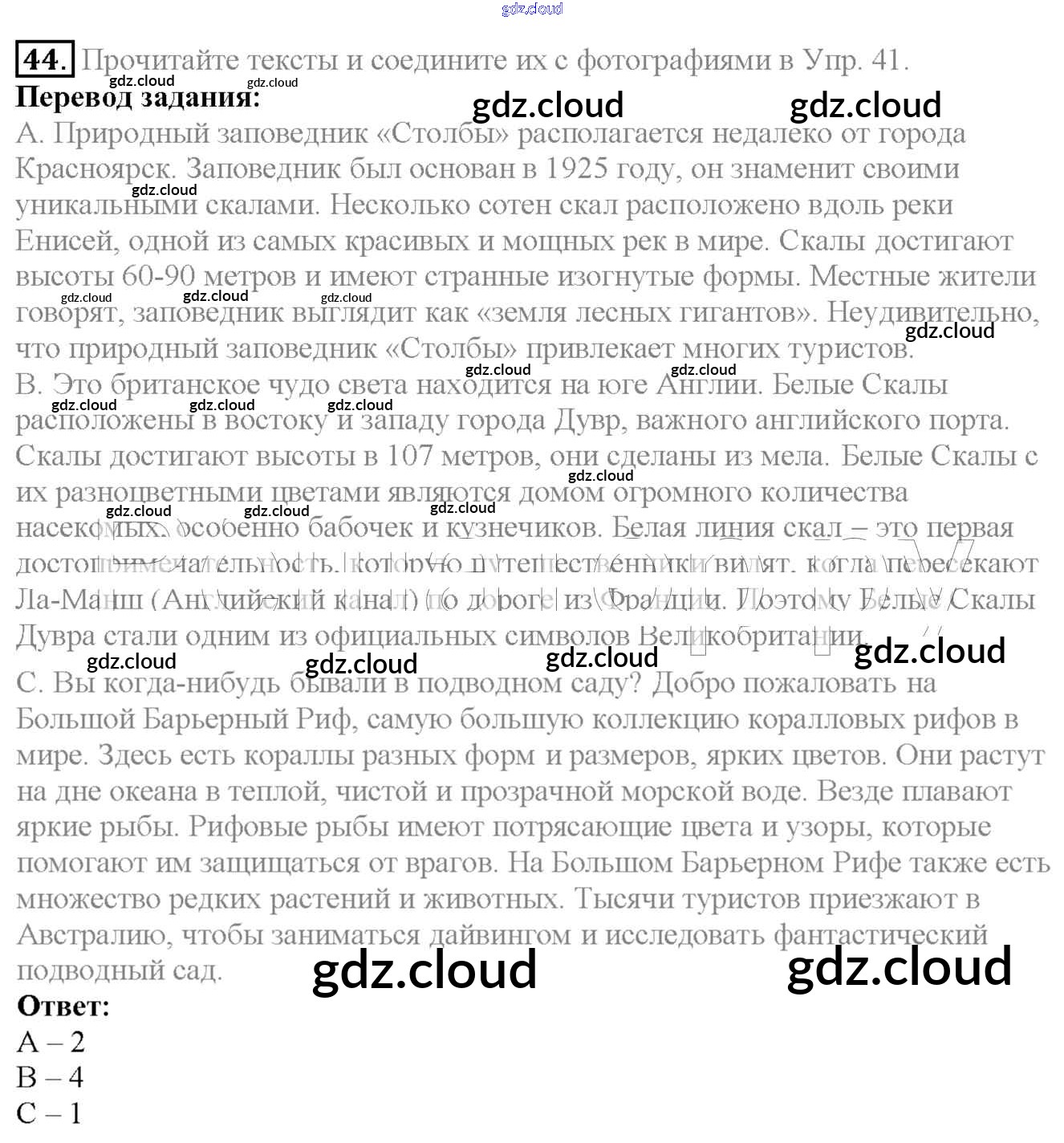 Ответ на задание 44 Учебник Английский язык  за 6 (шестой) класс Биболетова, Денисенко, Трубанева Enjoy English  2015, 2019