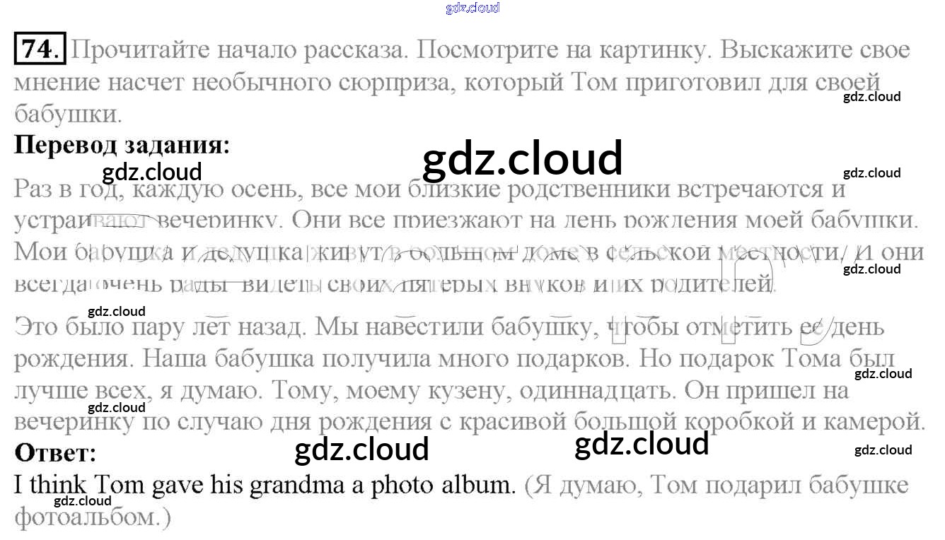 Ответ на задание 74 Учебник Английский язык  за 6 (шестой) класс Биболетова, Денисенко, Трубанева Enjoy English  2015, 2019