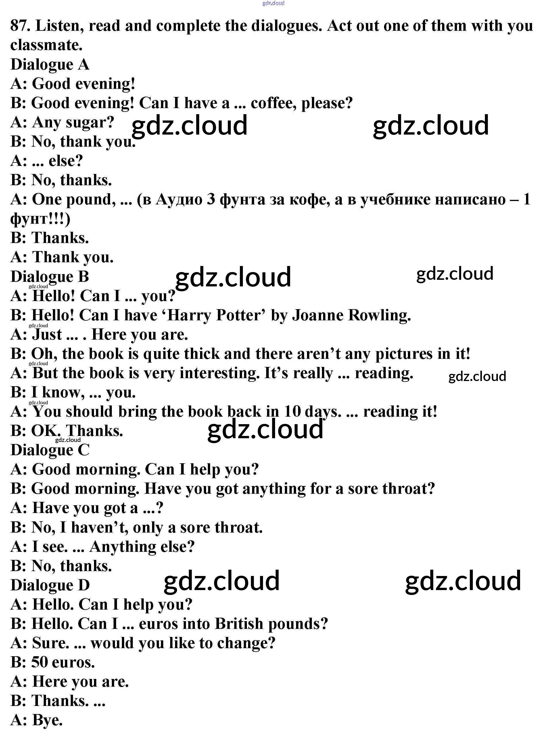 Ответ на задание 87 Учебник Английский язык  за 6 (шестой) класс Биболетова, Денисенко, Трубанева Enjoy English  2015, 2019