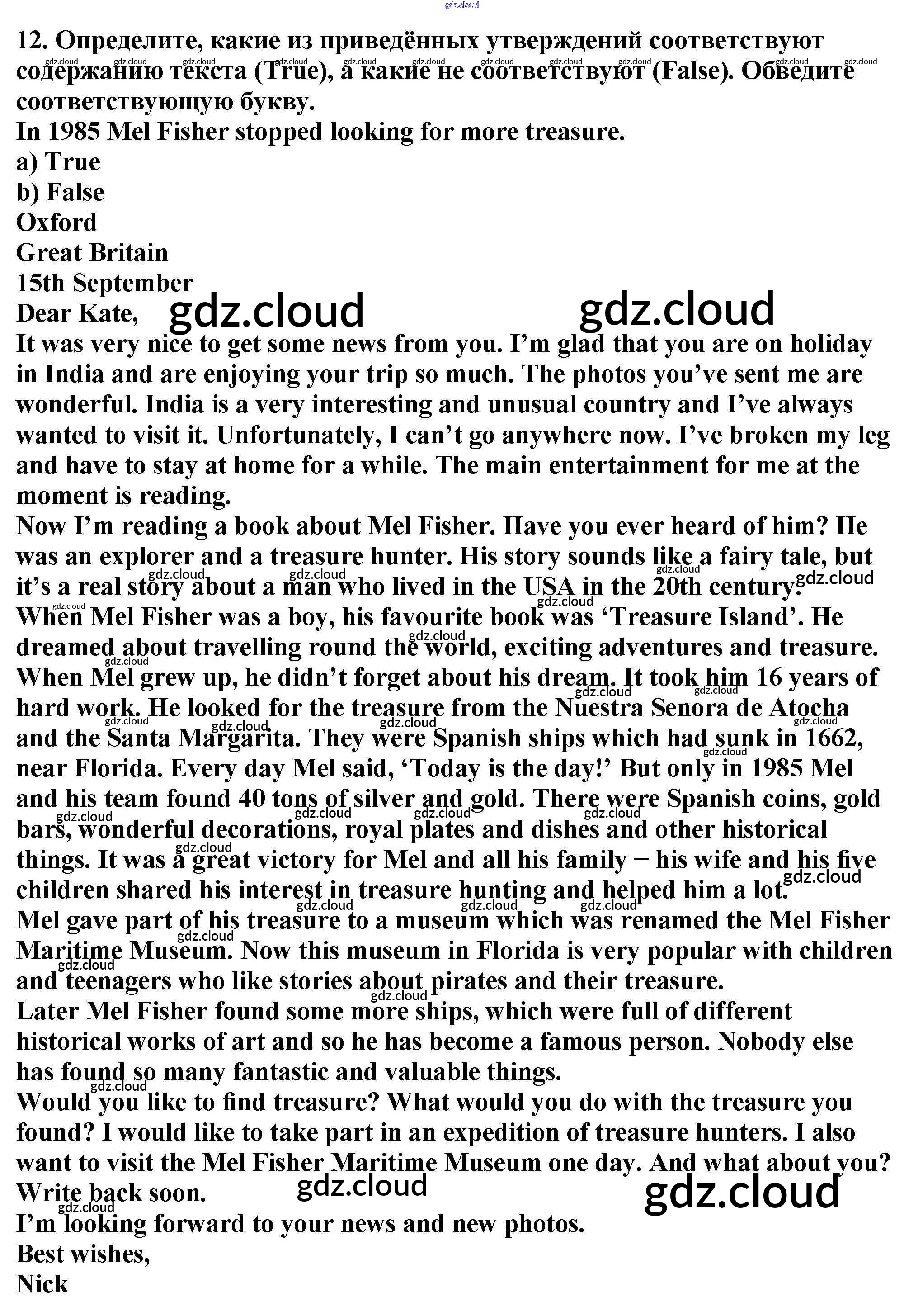 Ответ на задание 12 Учебник Английский язык  за 6 (шестой) класс Биболетова, Денисенко, Трубанева Enjoy English  2015, 2019