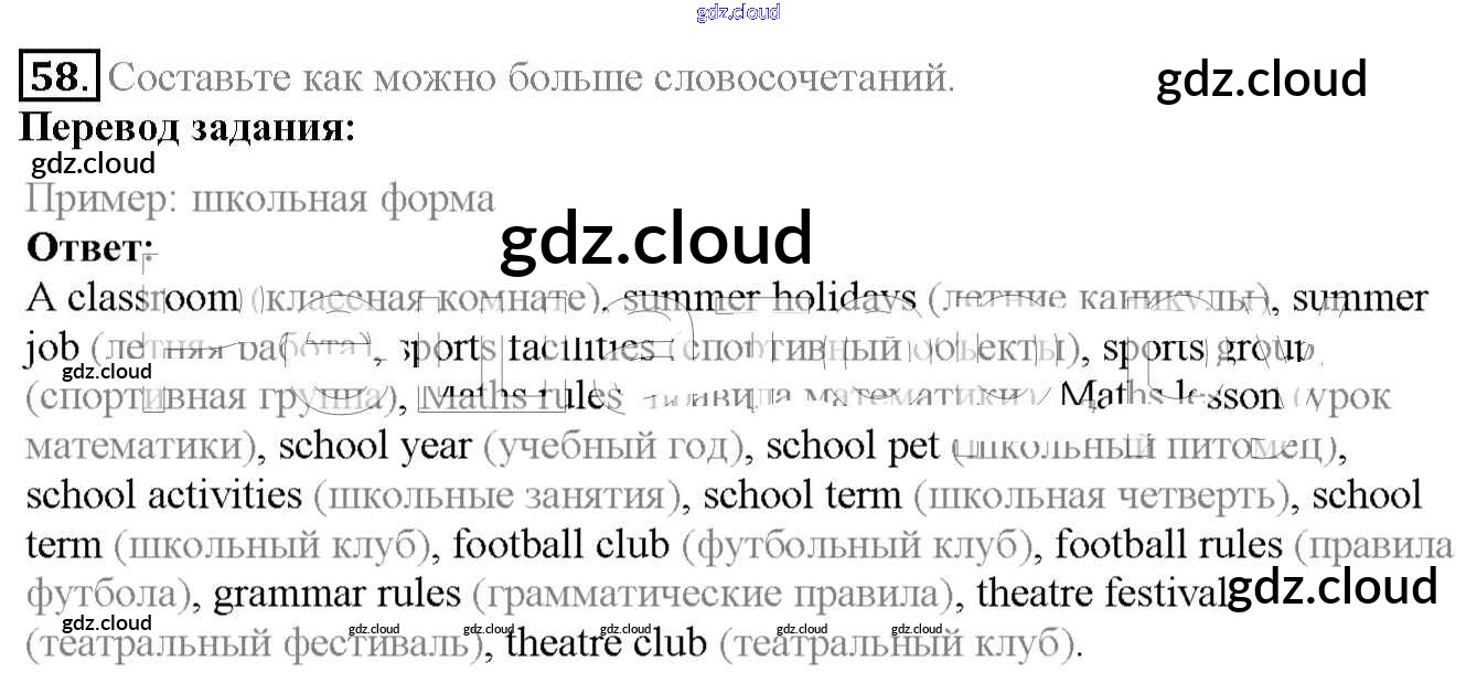 Ответ на задание 58 Учебник Английский язык  за 6 (шестой) класс Биболетова, Денисенко, Трубанева Enjoy English  2015, 2019