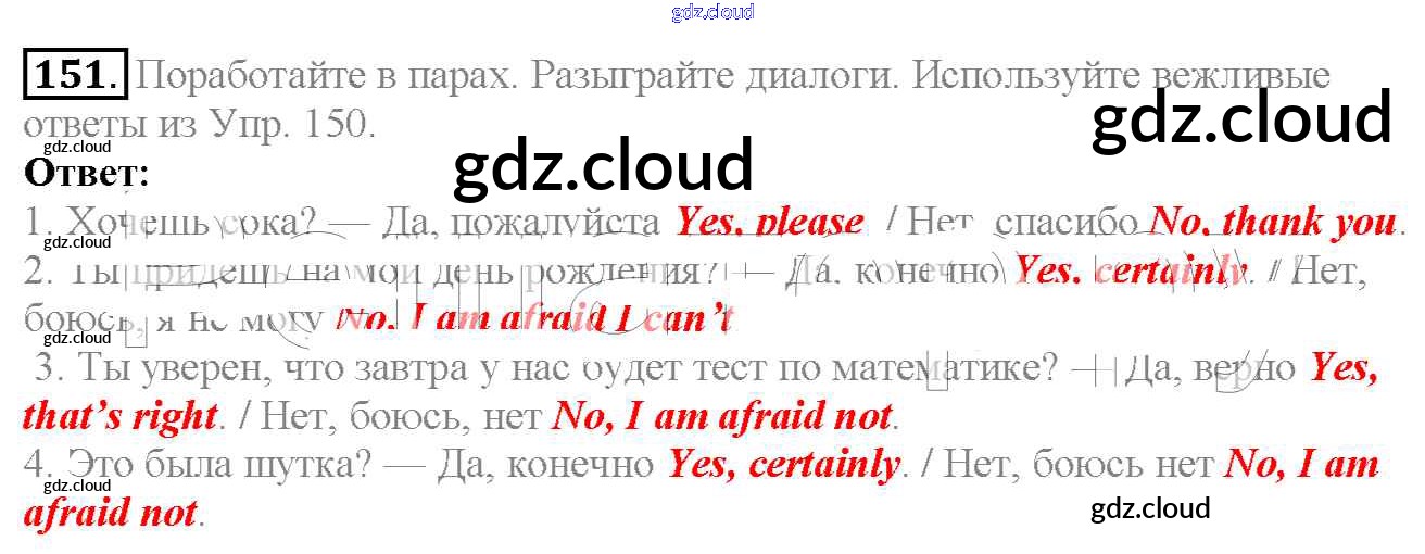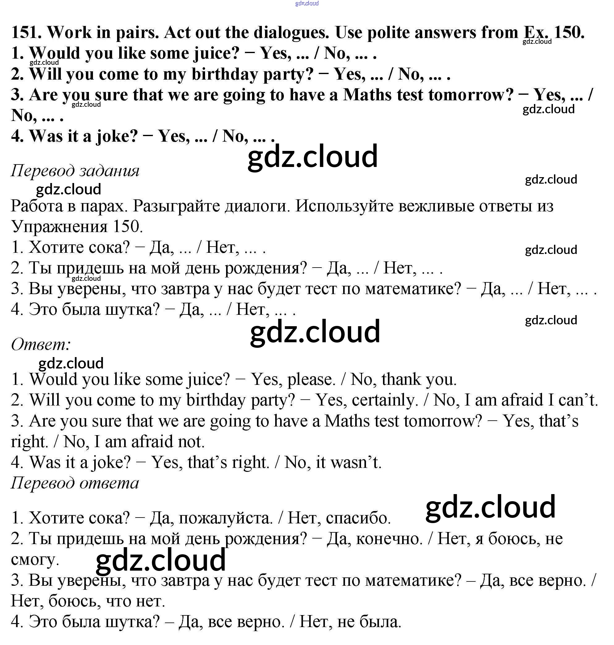 Ответ на задание 151 Учебник Английский язык  за 6 (шестой) класс Биболетова, Денисенко, Трубанева Enjoy English  2015, 2019