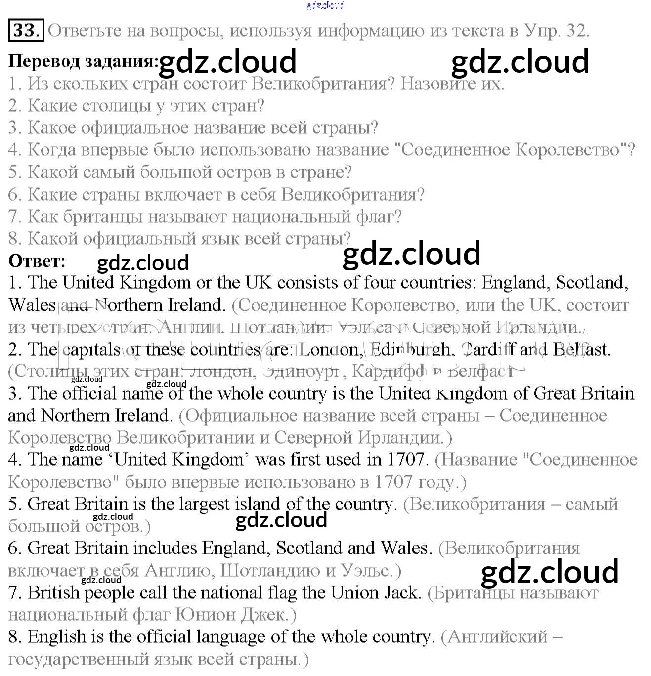 Ответ на задание 33 Учебник Английский язык  за 6 (шестой) класс Биболетова, Денисенко, Трубанева Enjoy English  2015, 2019