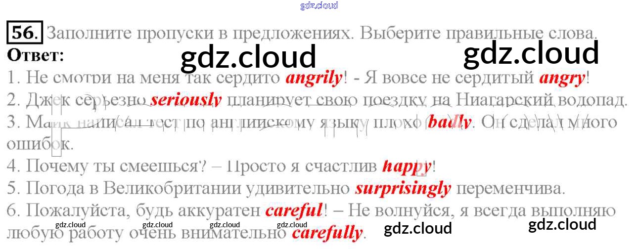 Ответ на задание 56 Учебник Английский язык  за 6 (шестой) класс Биболетова, Денисенко, Трубанева Enjoy English  2015, 2019