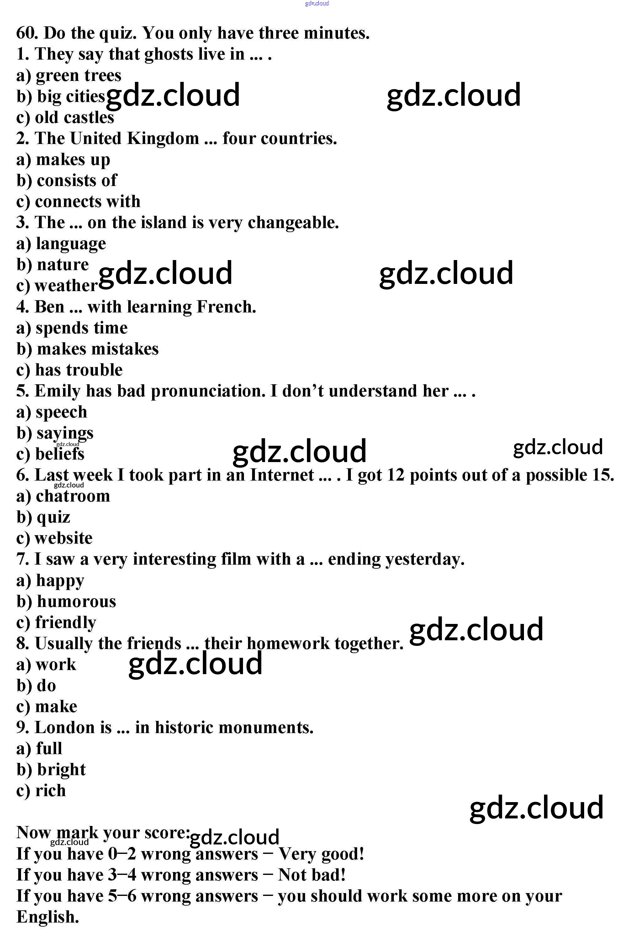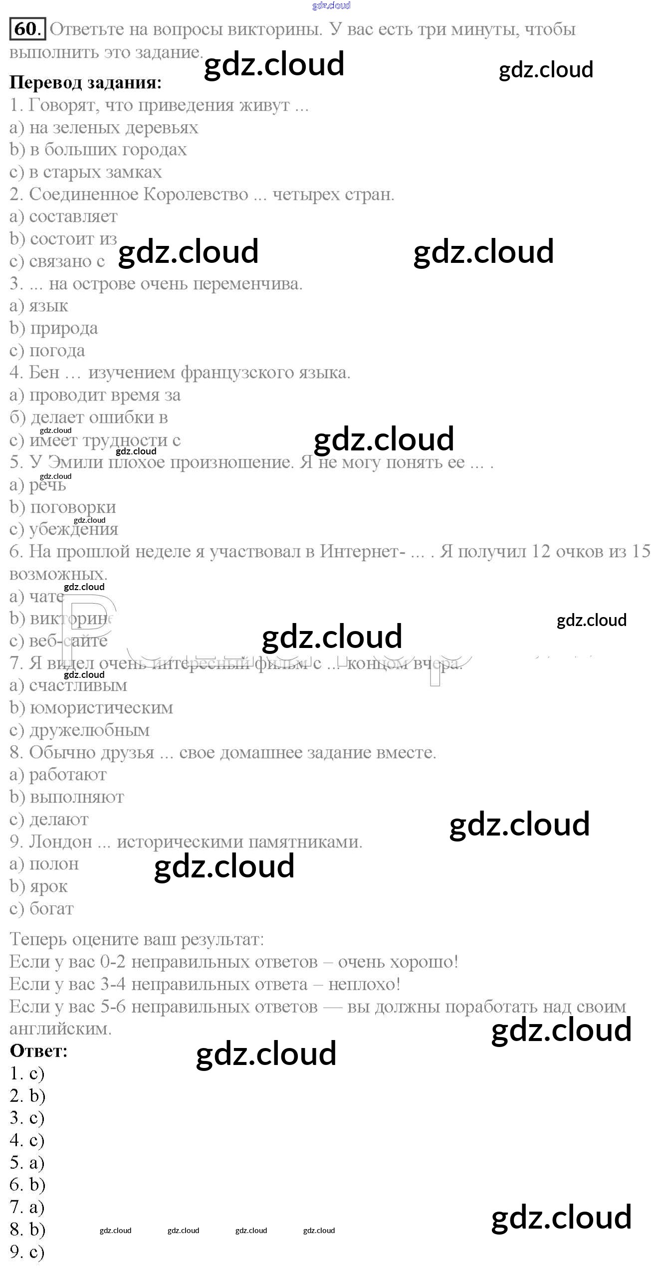Ответ на задание 60 Учебник Английский язык  за 6 (шестой) класс Биболетова, Денисенко, Трубанева Enjoy English  2015, 2019