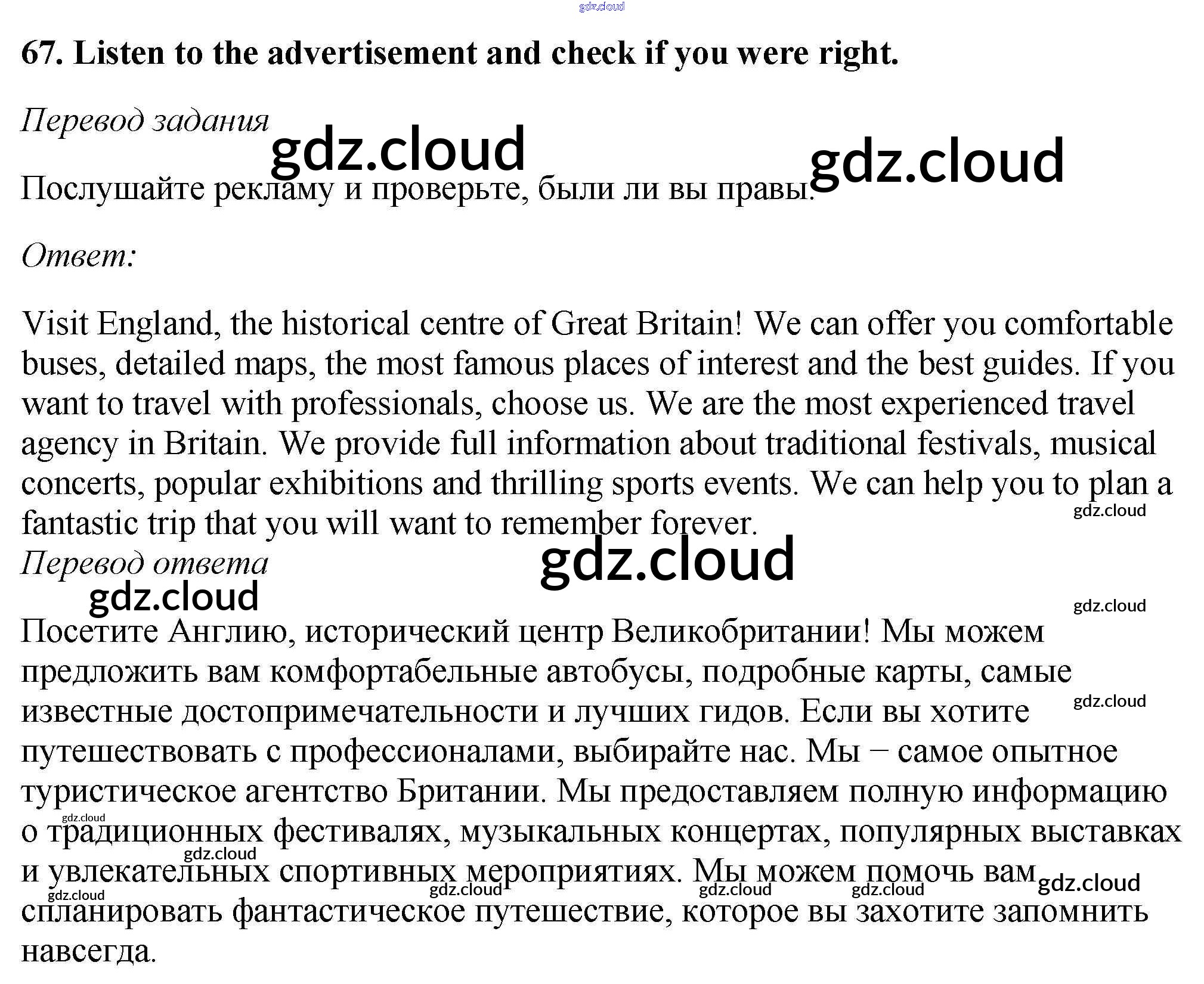 Ответ на задание 67 Учебник Английский язык  за 6 (шестой) класс Биболетова, Денисенко, Трубанева Enjoy English  2015, 2019