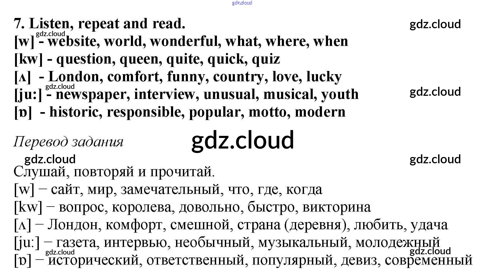 Ответ на задание 7 Учебник Английский язык  за 6 (шестой) класс Биболетова, Денисенко, Трубанева Enjoy English  2015, 2019